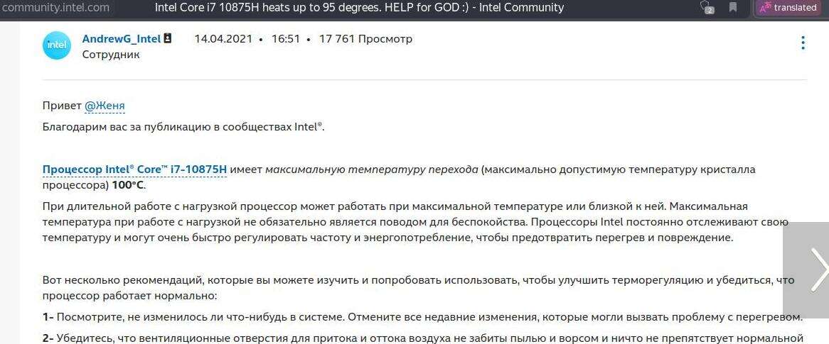И вообще, до 100 градусов считается нормальной рабочей температурой у процессоров в ноутбуках судя по ответам на форумах Intel, это не всегда является поводом для беспокойства, но о поисках результатов в сети со схожими процессорами поговорим в другой раз, увы, не удалось всё вместить в одну статью.
