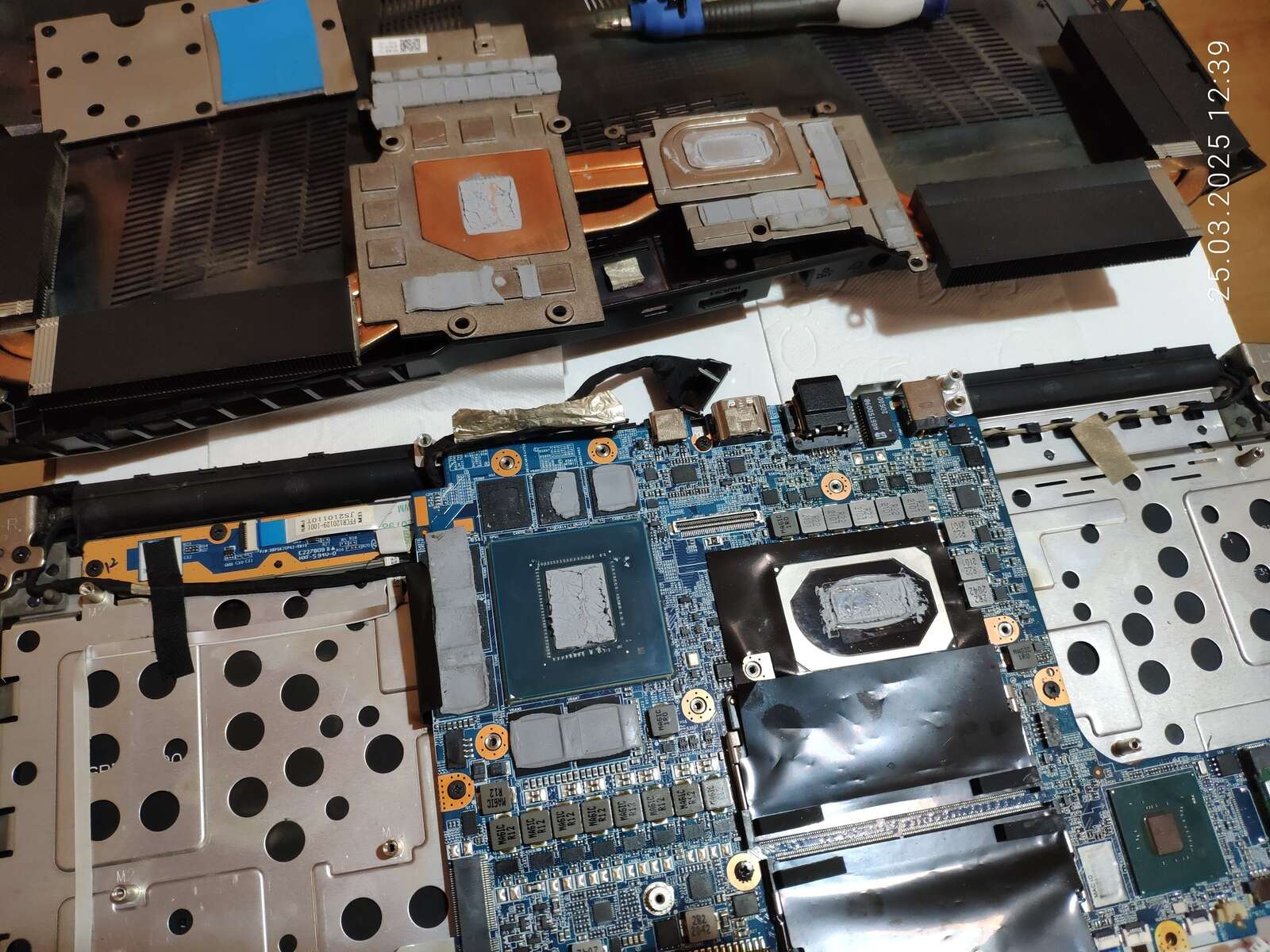 В итоге было решено разобрать ноутбук полностью, первый раз просто осмотрел по быстрому, во второй раз уже полез более основательно вооружившись схемами на контроллеры и подручным тестером, а в процессе научился выпаривать термопасту, делая её похожей на пасту с фазовым переходом, но давайте как-нибудь разложим всё по своим местам, а полную разборку оставим для отдельной статьи...