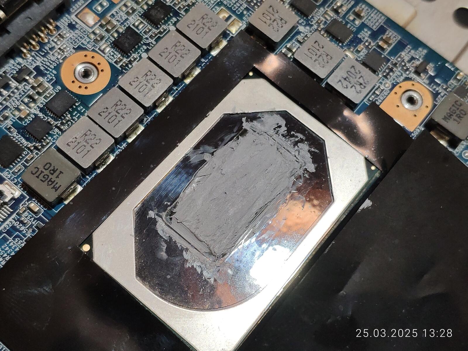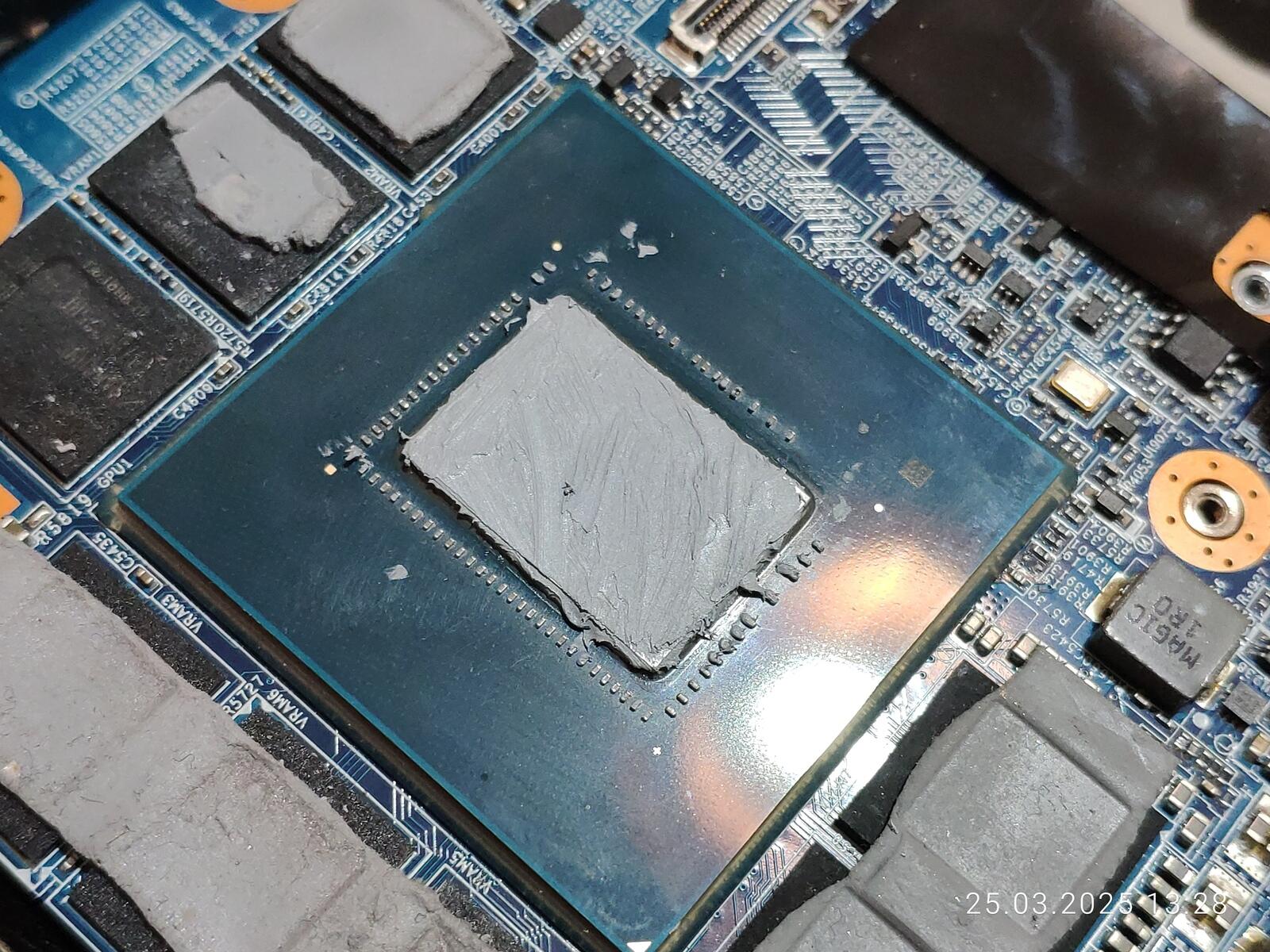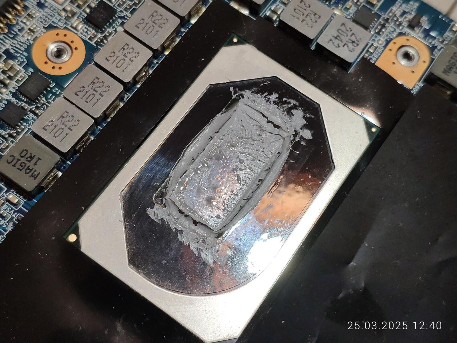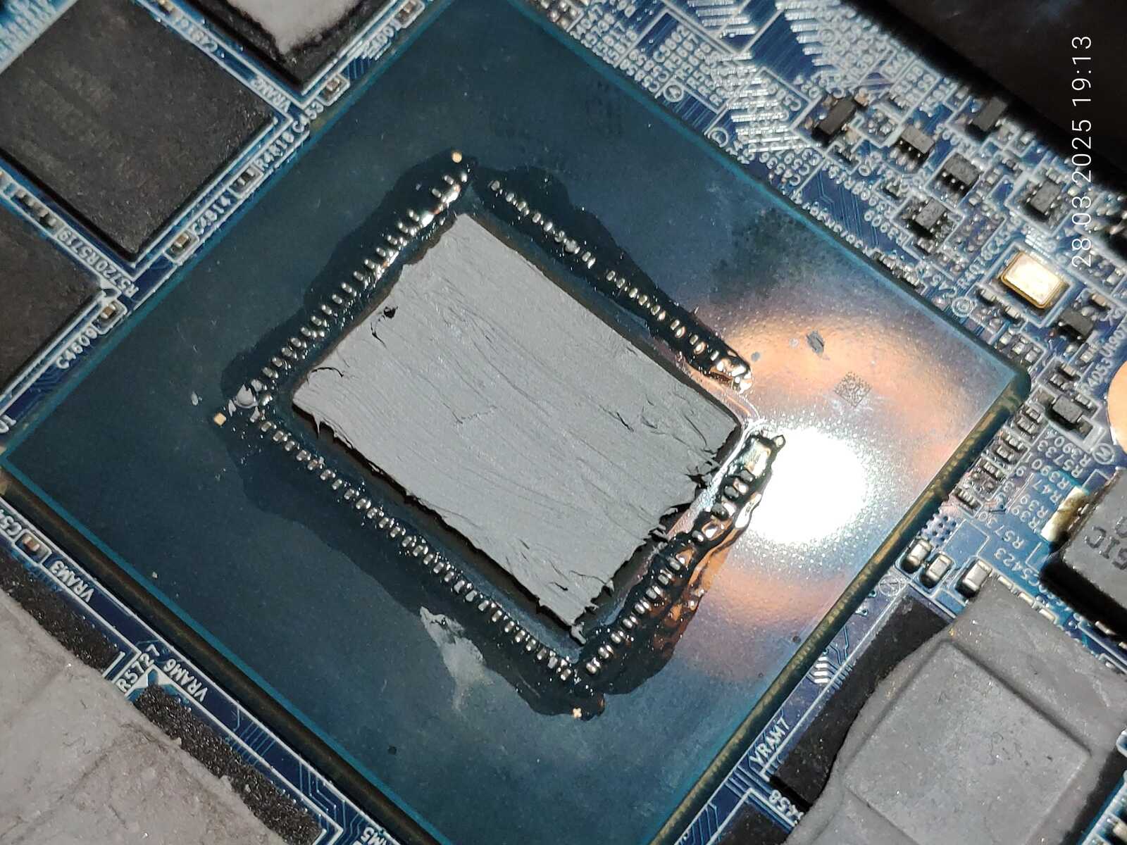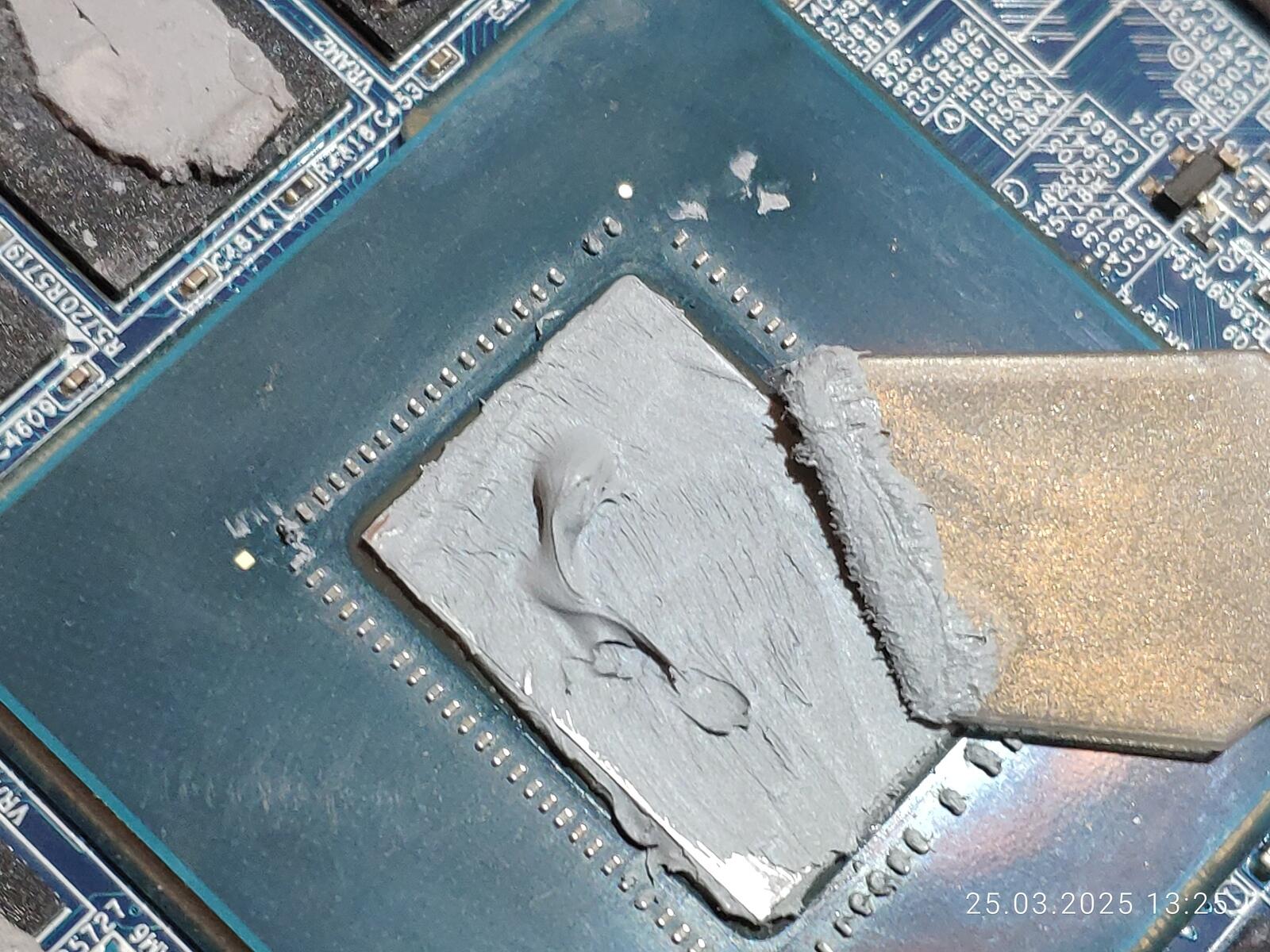 Хотя на процессор и была нанесена уже использованная "отработка", но всё равно слишком много наполнителя осталось в ней, ну а на видеокарте, как всегда, всё прекрасно, ибо площадь чипа огромная в отличие от ЦП.