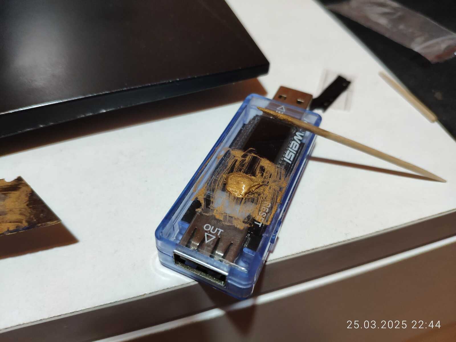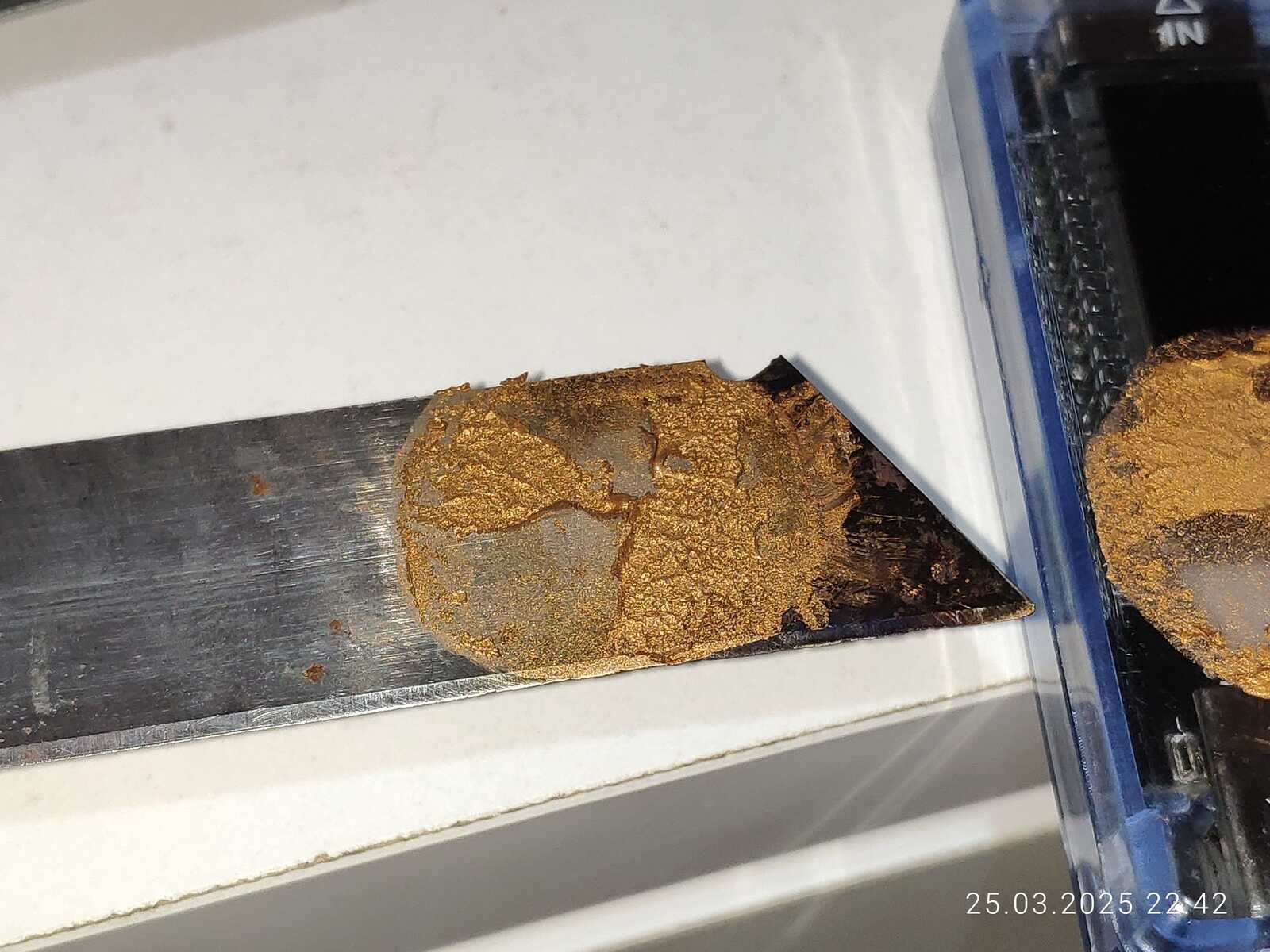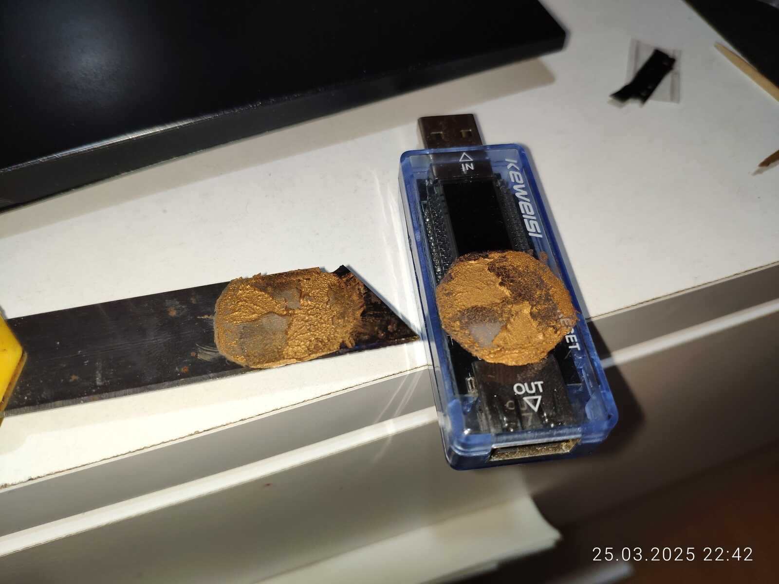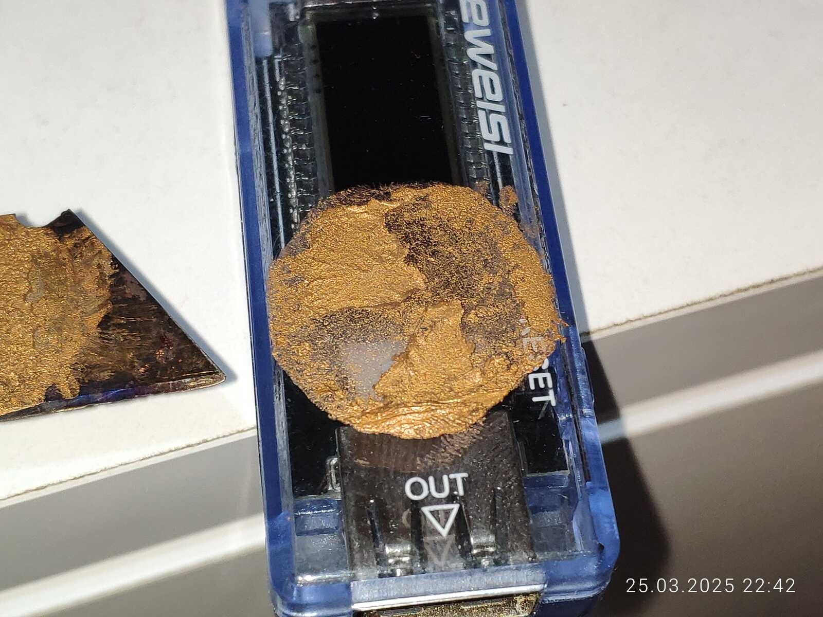 Смотря на всю эту историю с расслоением я подумал, а что если сварить термопасту, буквально сварить чтобы наполнители испарились, и вот она, выпаренная HY610!