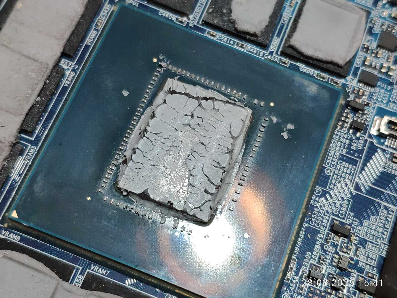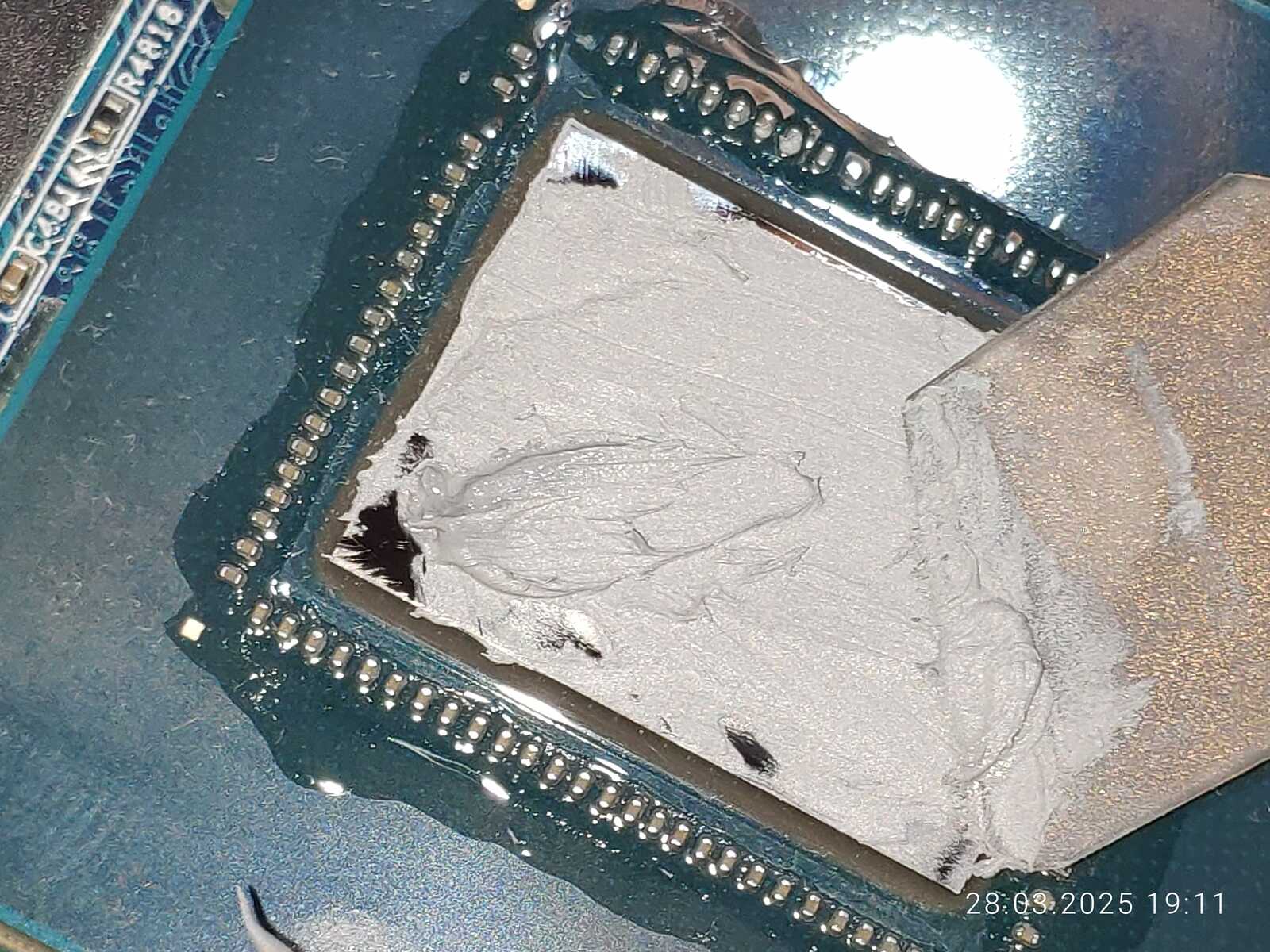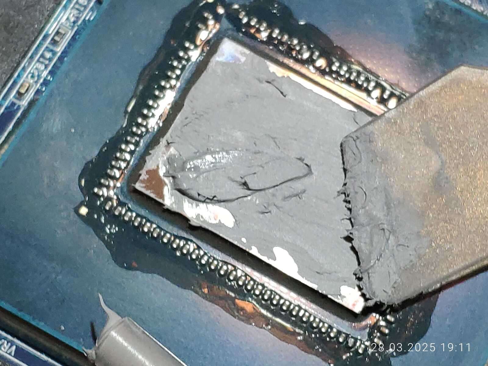 А вот с центральным процессором ситуация неприятная, да, я снова обнаружил прозрачную жижу, отслоившуюся на кристалле, и на этот раз кое-что заметил...