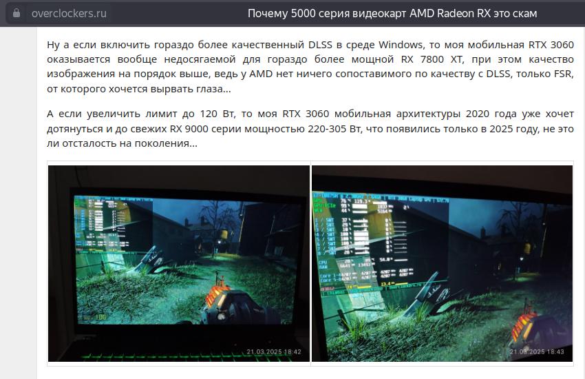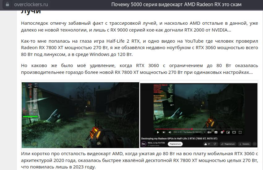 AMD поступила крайне разумно выпустив поддержку "лучей" начиная с Radeon RX 6000 серии в 2021 году, как раз к этому моменту технология стала уместна, хотя и нужна исключительно фанатам RTX! И не верьте оплаченным зелёной корпорацией тестам в интернете, где современная и мощная Radeon RX 7800 XT проигрывает какой-то мобильной RTX 3060 древней! Это всё враньё и не тесты вообще, а DLSS всегда был, и будет хуже свободных аналогов от AMD вроде FSR! Это всё гнусный маркетинг!
