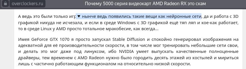А ещё NVIDIA заявляет что является лидером в области искусственного интеллекта, это всё очередной гнусный маркетинг! Ведь именно AMD является настоящим лидером в ИИ и вообще в сегменте видеокарт, а зелёные просто пытается в очередной раз продать свой хлам с помощью массивного маркетинга!