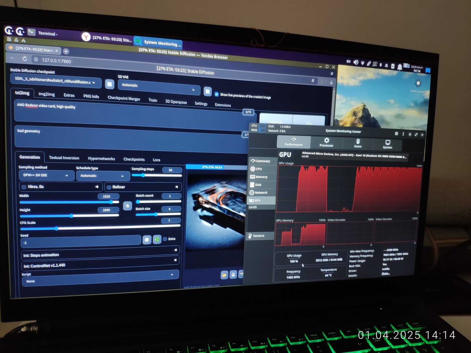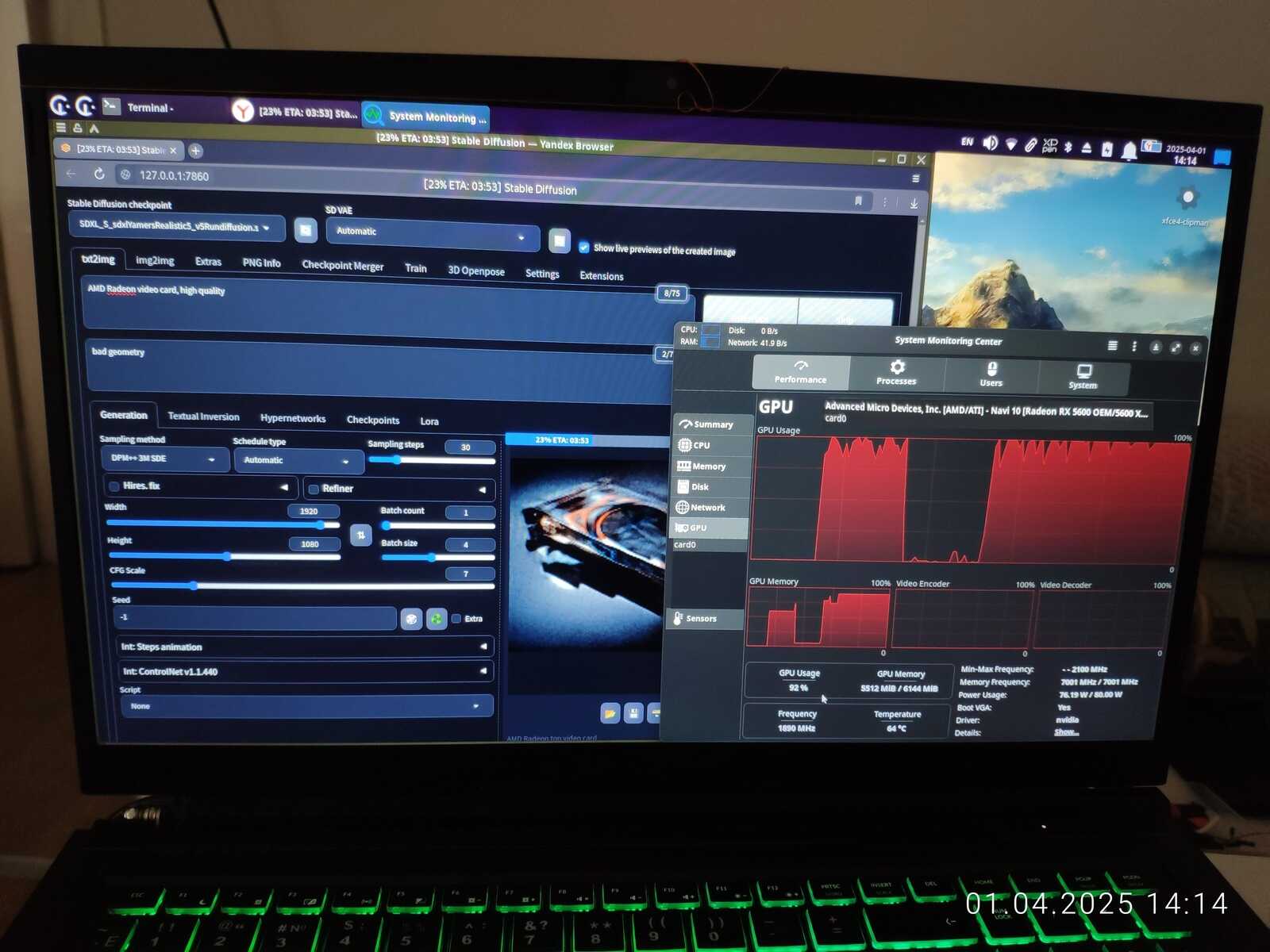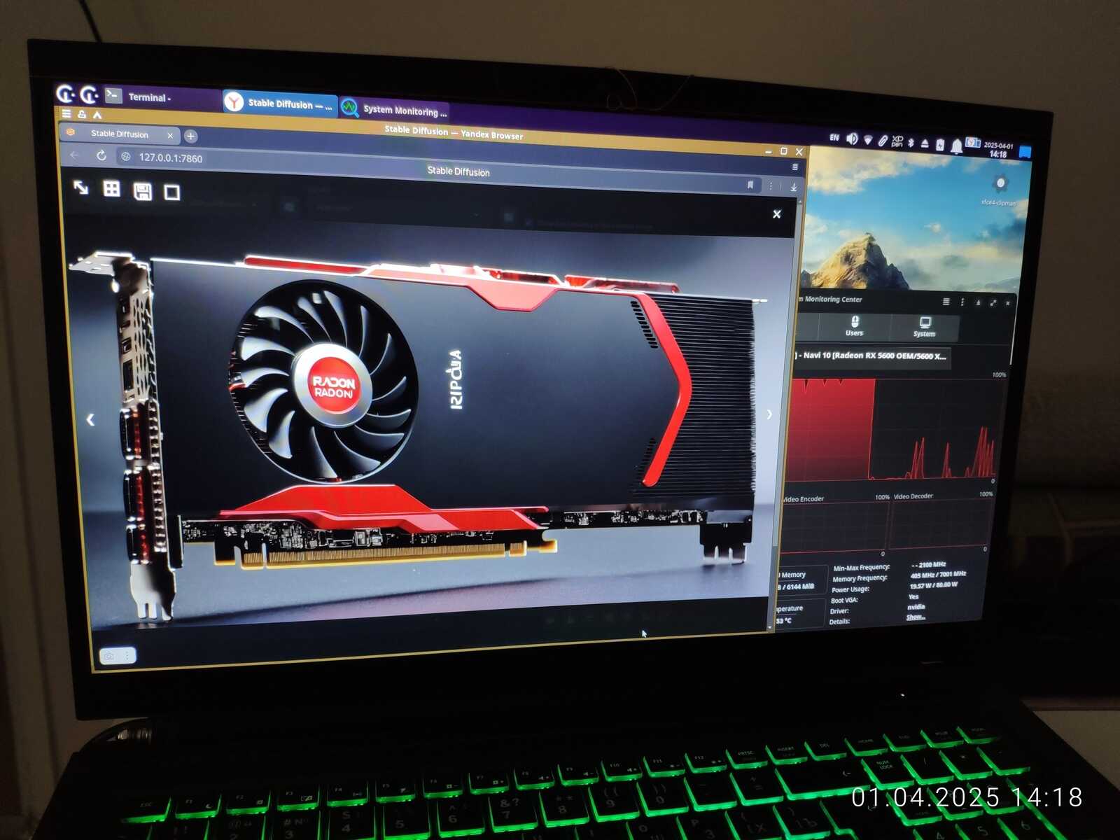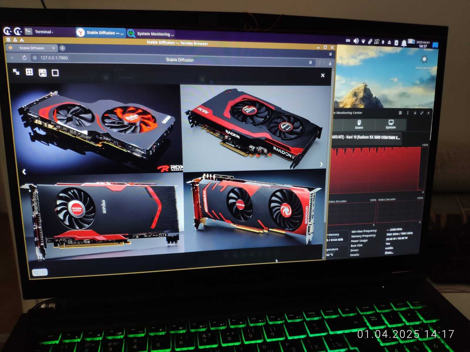 Тем временем даже древняя Radeon RX 5600M со своими 6 гигабайтами памяти способна генерировать одновременно 4 изображения в разрешении 1920x1080 при помощи нейронной сети! Что очередное доказательство тотального превосходства над действительно отсталыми GeForce!