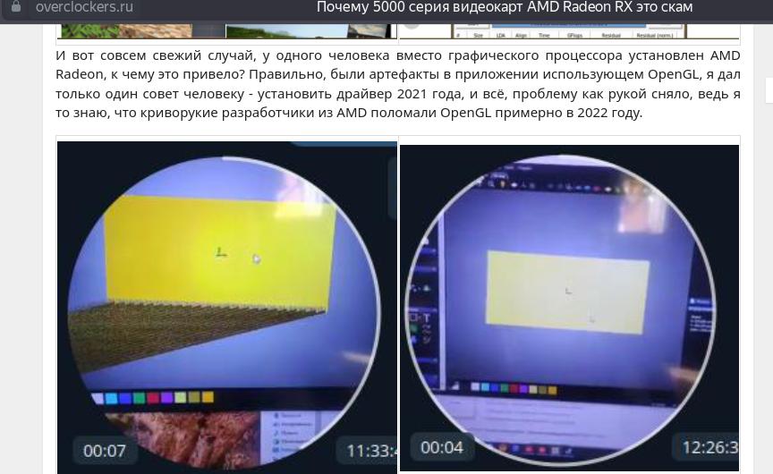 Ещё любители зелени любят тыкать в сторону красных видеокарт артефактами и поломанным OpenGL... Это всё полнейшая чушь и враньё! Они просто берут GeForce, находят артефакты и выдают за Radeon! На самом деле никаких артефактов нет, не было и никогда не будет с видеокартами AMD! Ведь разработкой драйверов занимаются действительно опытные специалисты, а не подобранные на пол ставки бомжи из беднейших стран мира как у Intel и NVIDIA!