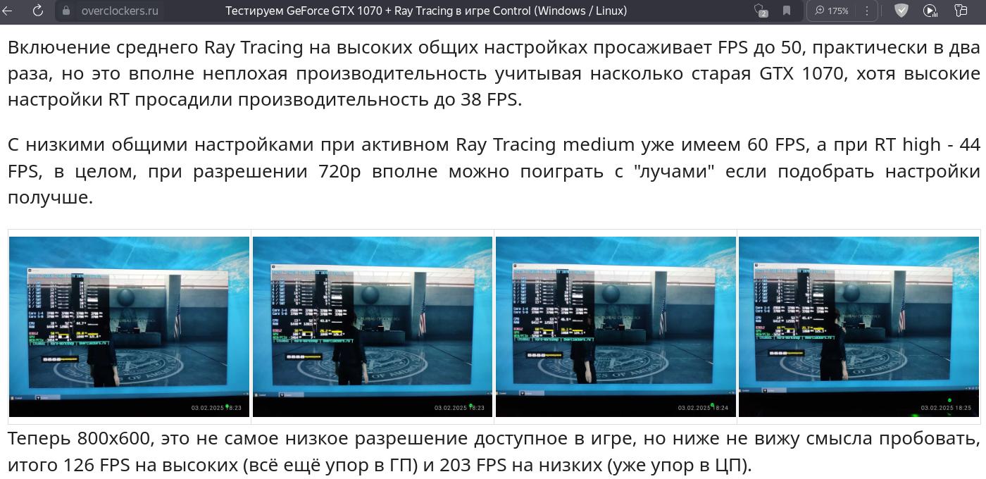 Ни для кого не секрет, что GeForce GTX 1070 отлично работала с драйвером NVIDIA 572.16, никаких чёрных экранов, артефактов и прочих аномалий замечено не было мною, всё просто нормально работало до самого конца, в том числе с активной трассировкой лучей на GTX 1070, пока не обменял ПК на текущий ноутбук.