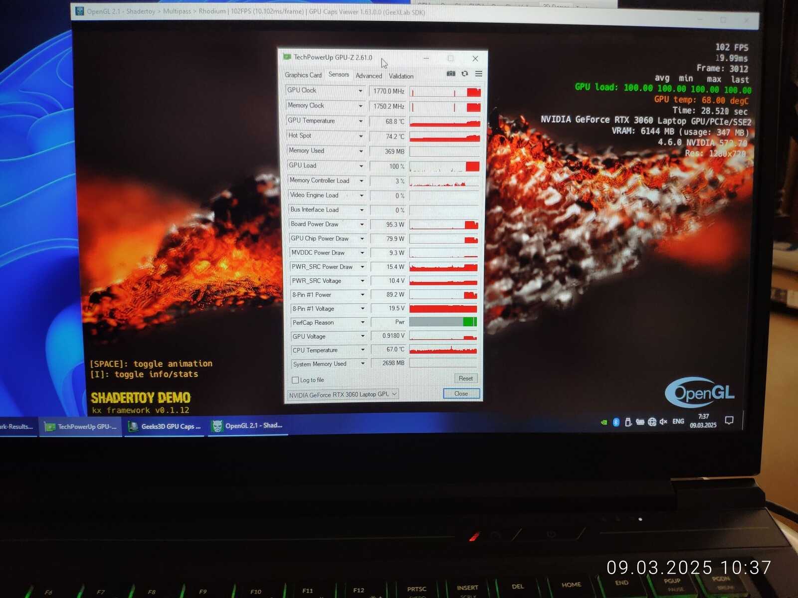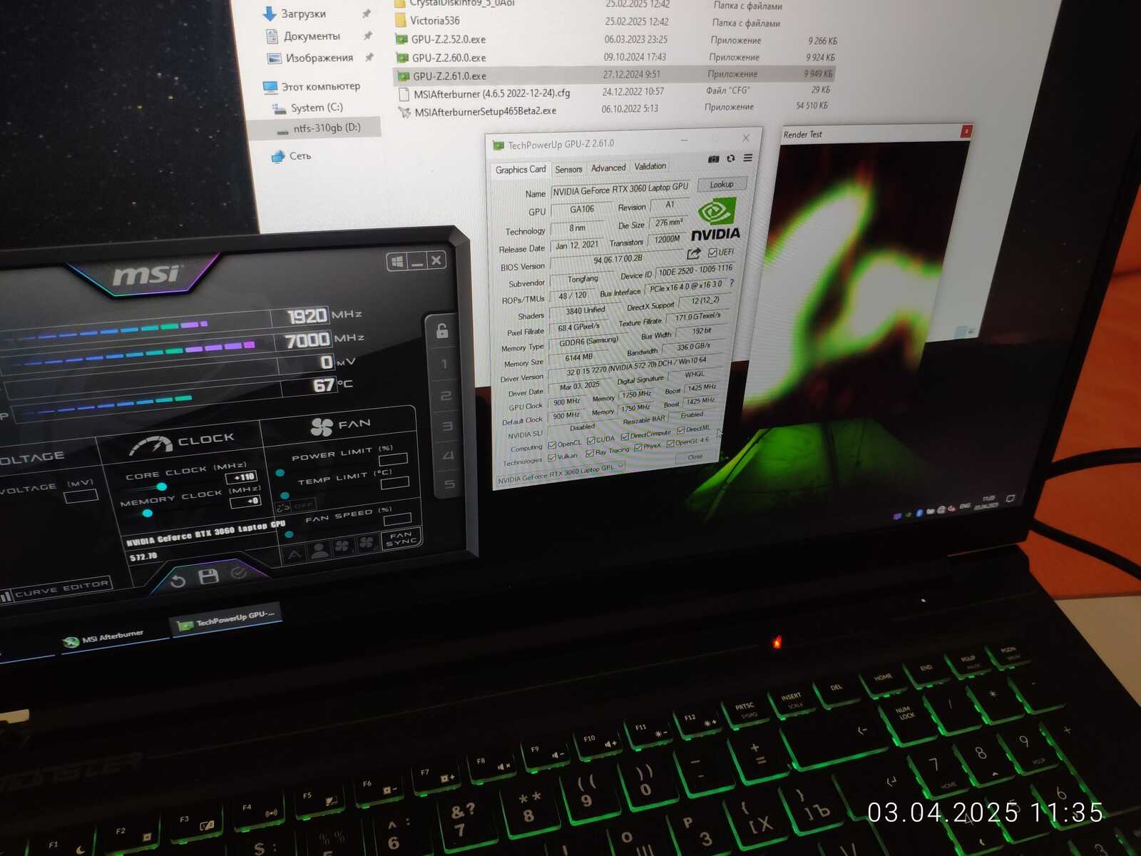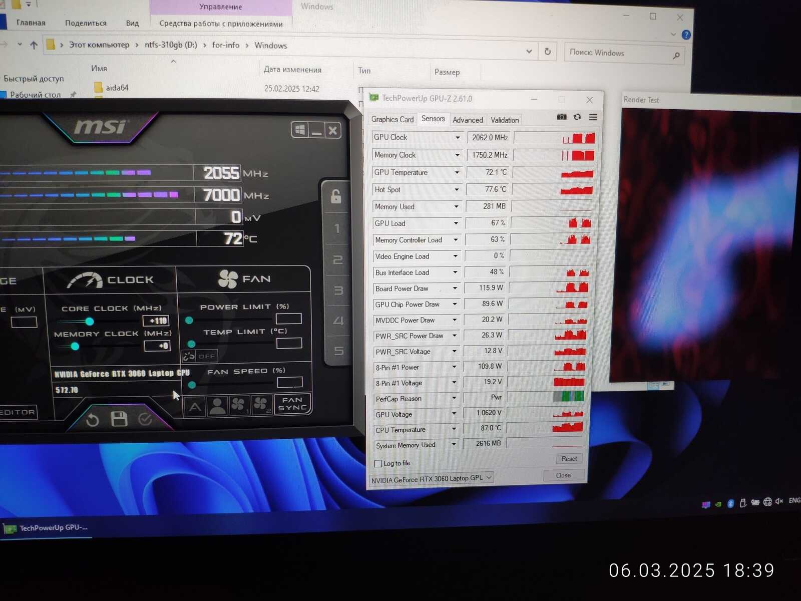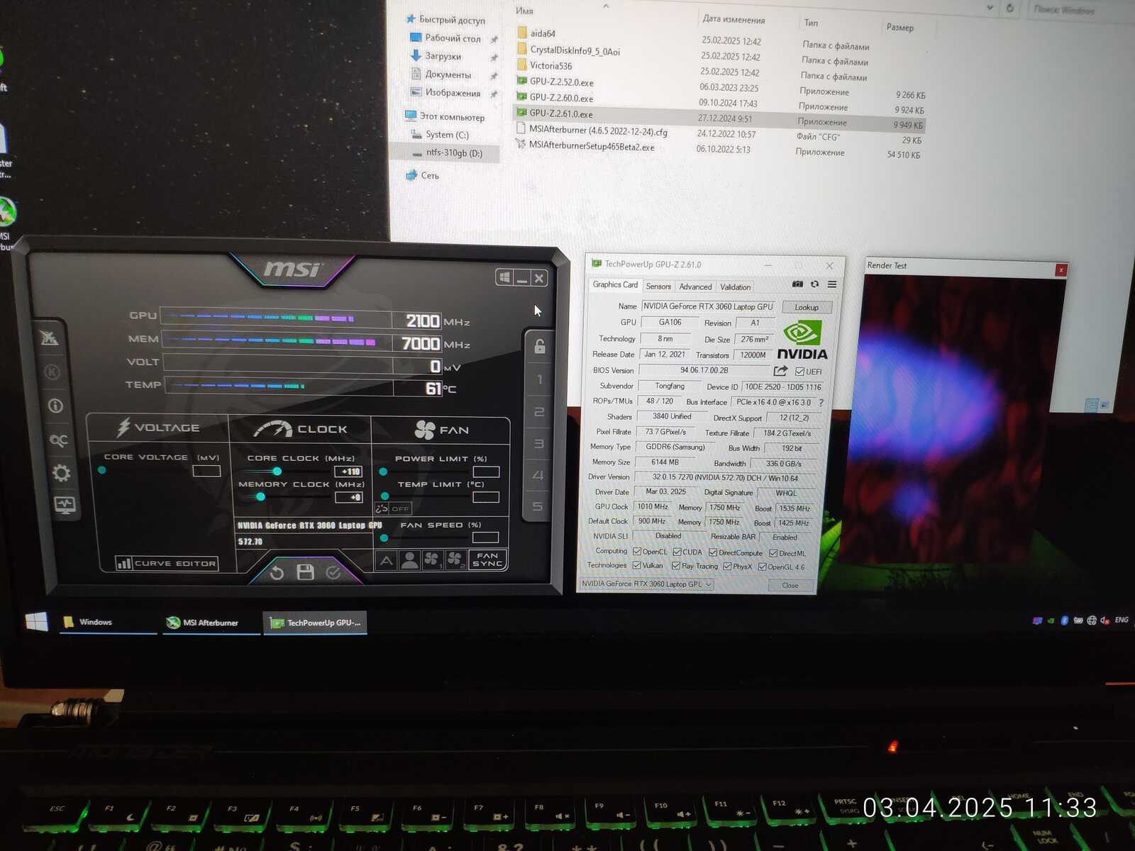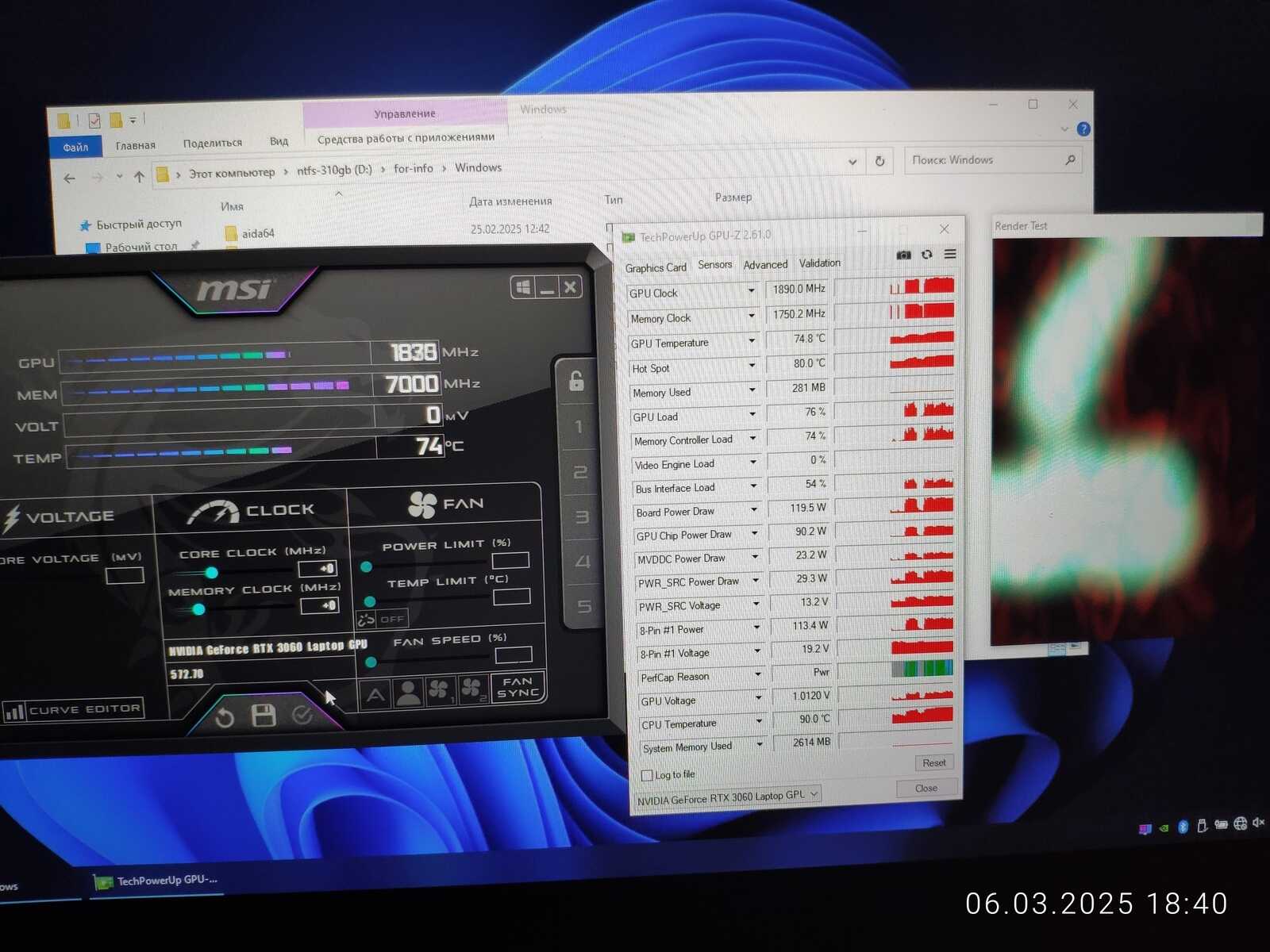 Даже крутил немного параметры разгона, и да, RTX 3060 очень даже разгоняется, хотя и не искал предел, ибо не вижу смысла, в плане производительности мобильная RTX 3060 и так превосходит гораздо более новую и мощную RX 7800 XT, тесты не дадут соврать.