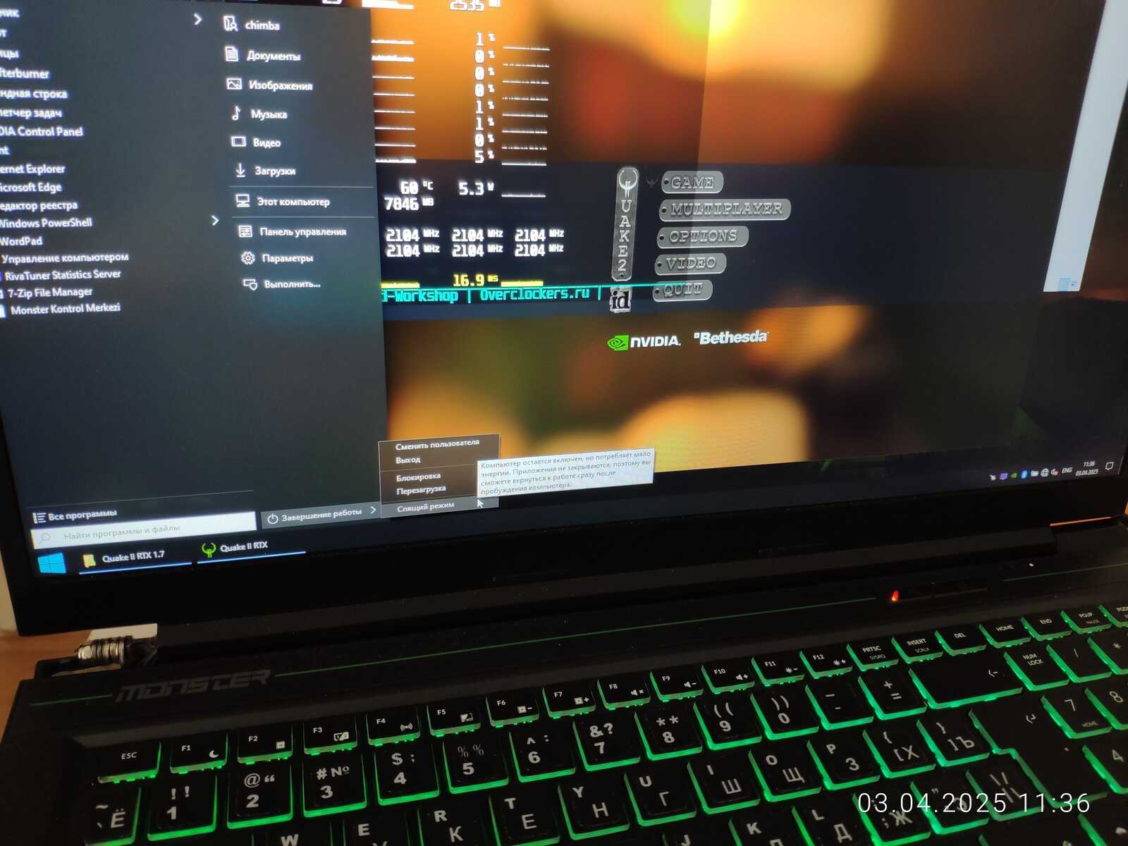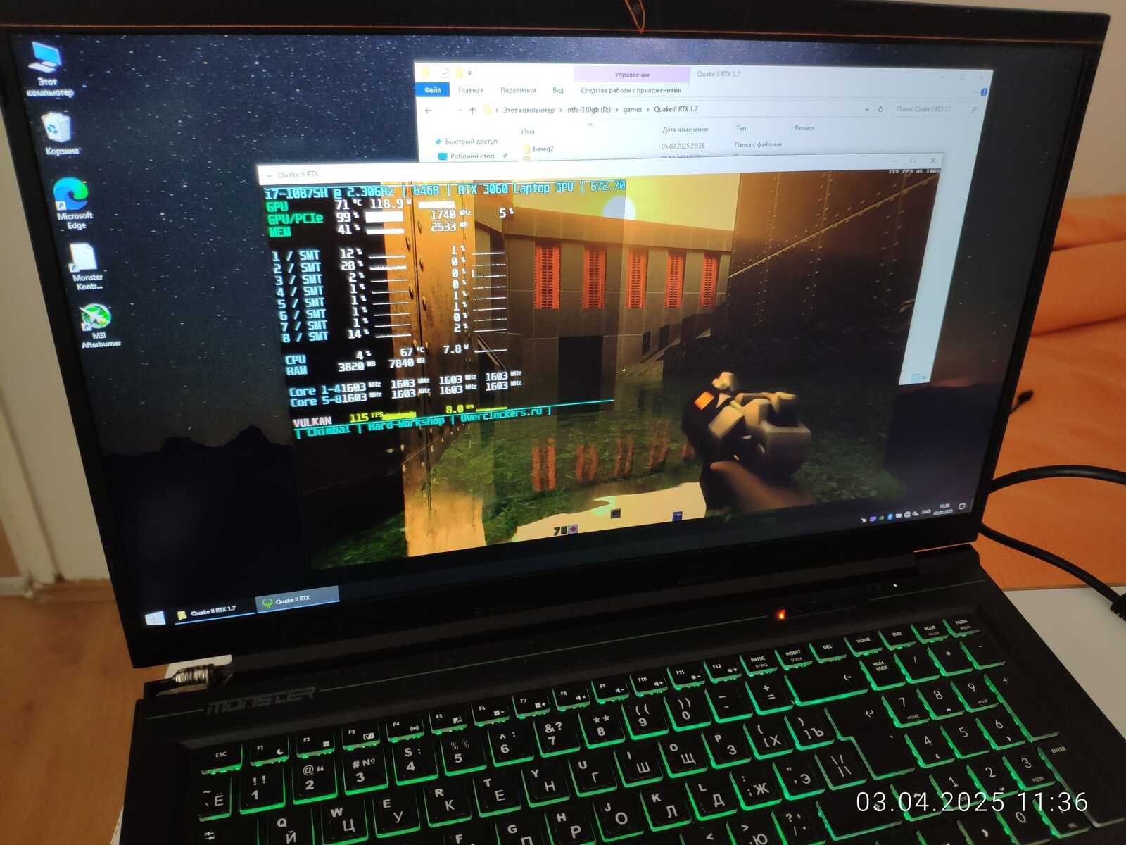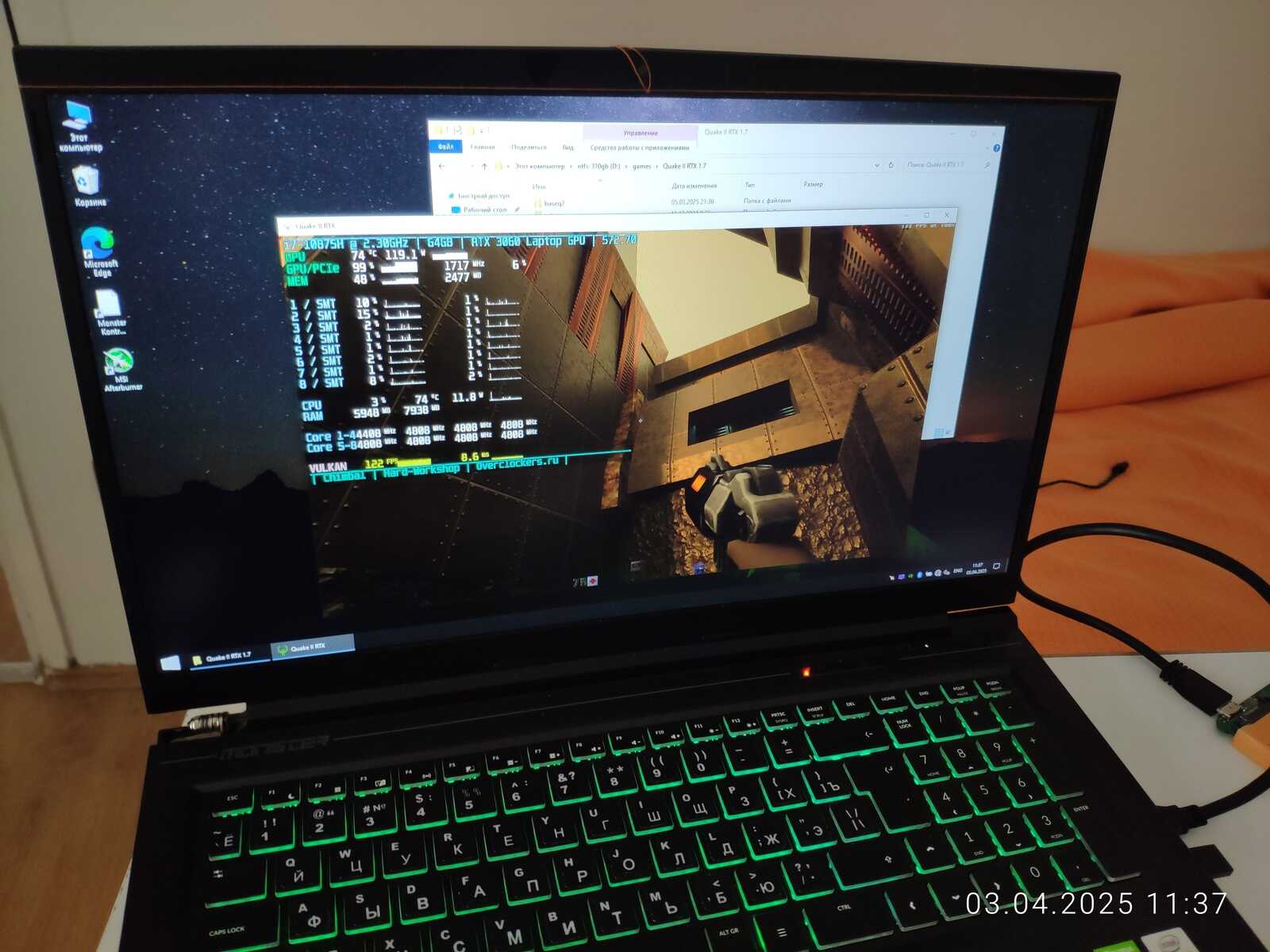 Второй заход, на этот раз оставим запущенной игру Quake II RTX, и снова всё прекрасно проснулось с драйвером NVIDIA 572, игра при этом не поломалась, как порой бывает даже с гораздо более простыми играми в среде Linux после спящего режима, даже когда установлен хвалёный AMD Radeon вместо видеокарты...