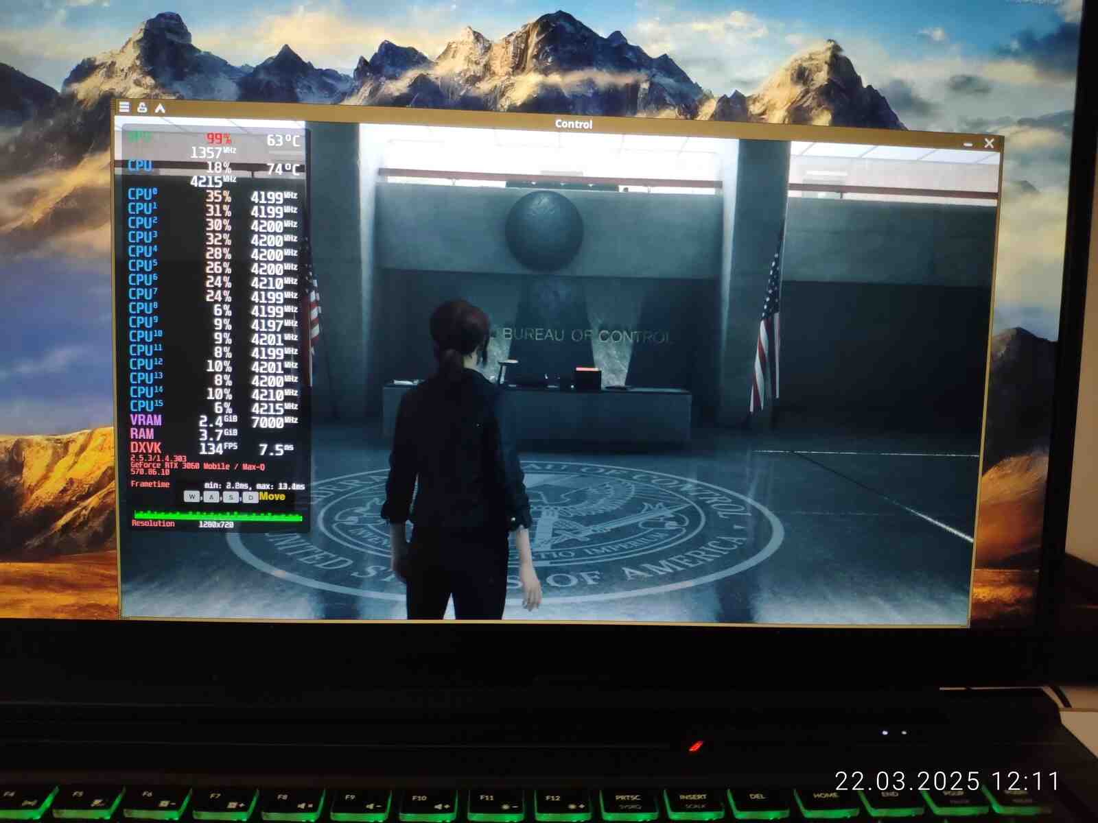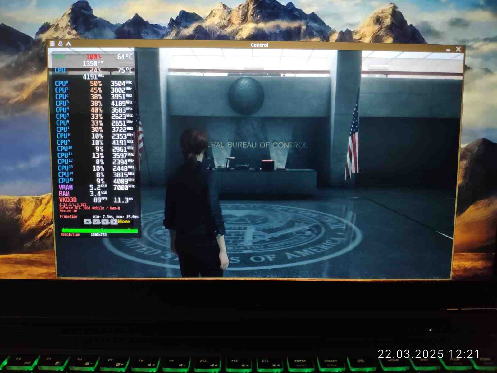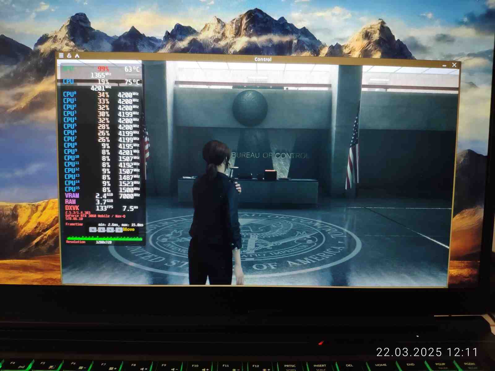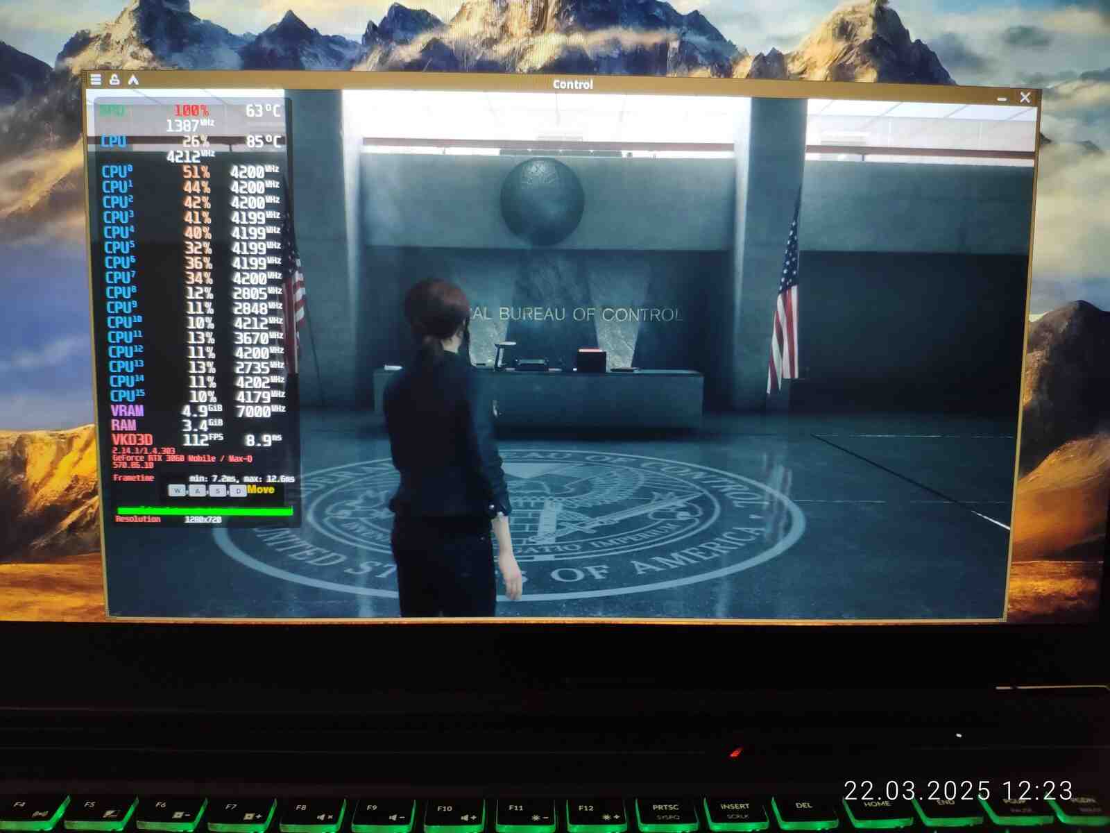 И вот настал момент когда "новый" ноутбук был протестирован в игре Control, предыдущее "амуде" я проверял с разными планировщиками ЦП, это действительно влияло на производительность, ведь Ryzen 7 4800H архитектурно слишком слабый и недоразвитый процессор, чтобы без помощи операционной системы грамотно распределять нагрузку, но на Core i7-10875H я не буду проводить тесты с разными планировщиками в среде Linux, почему? Да потому что нет разницы, как показала практика - процессор от Intel хоть и старый, но прекрасно распределяет нагрузку на самые быстрые ядра даже при стандартном планировщике.