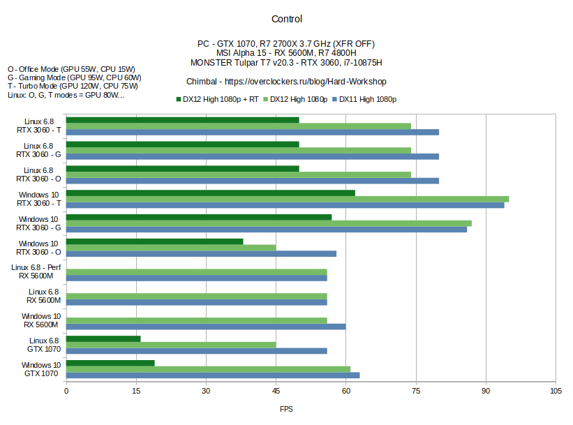 Ну да ладно, вернёмся к сравнению в игре Control, так как уже есть ряд собранных результатов, я не вижу никаких проблем просто продолжить существующую таблицу, но у текущего ноутбука целых три режима работы, потому придётся собирать результаты во всех трёх режимах...
