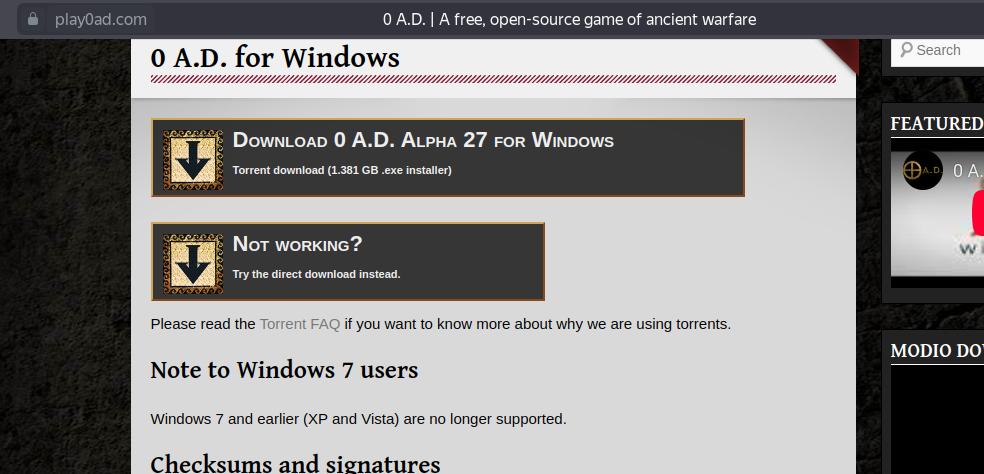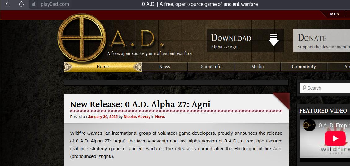 Найти готовый для использования распространяемый файл игры 0 A.D. можно в репозитории GitHub: