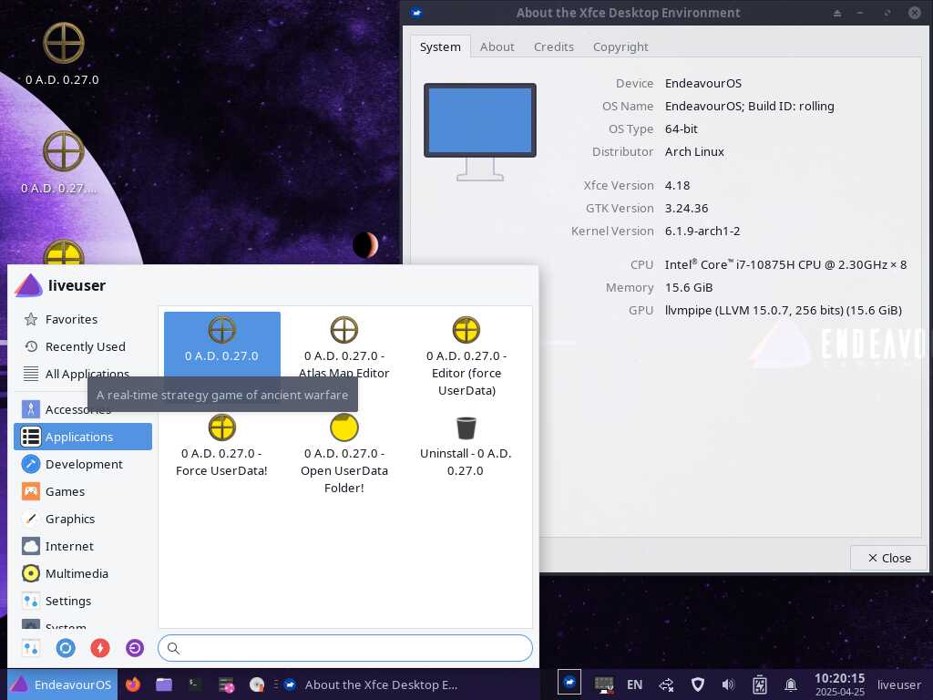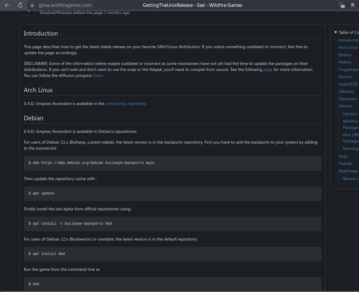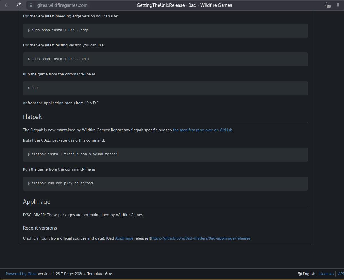 Теперь я могу в любой момент взять установочный пакет с игрой 0 A.D., и установить где хочу, когда хочу, и даже на компьютерах без доступа к интернету, достаточно просто запустить установочный пакет, несколько раз подтвердить установку, и готово, причём установка происходит в специально отведённый каталог, и не требуется root прав при этом.
