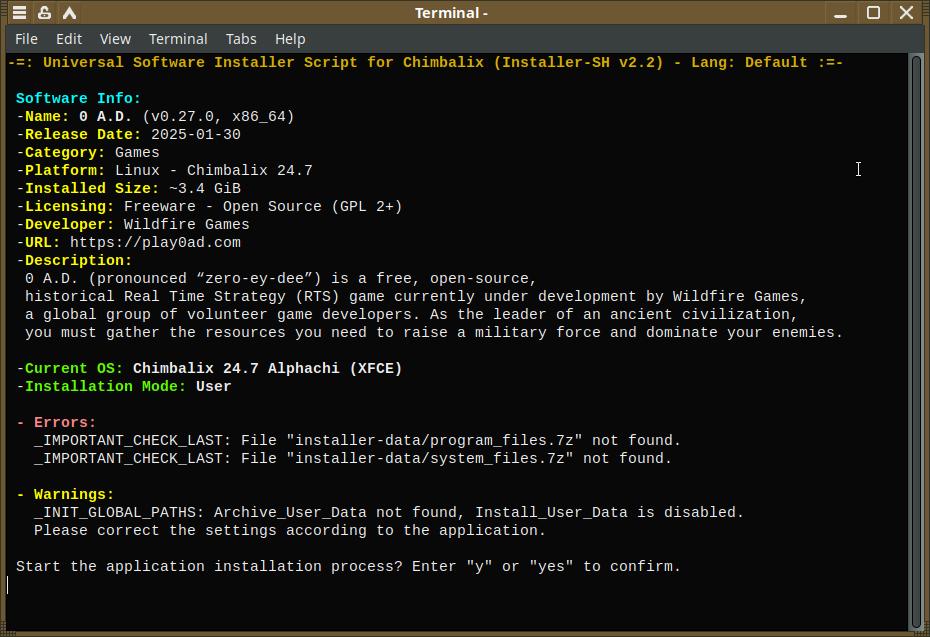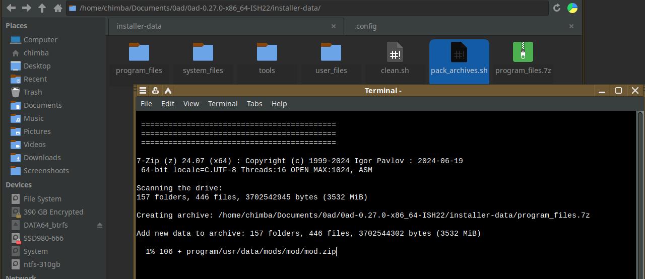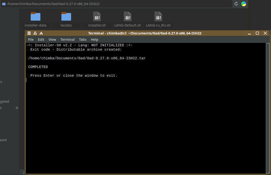 Мне сейчас приходится с нуля всё подготавливать для игры 0 A.D., ведь ранее такую игру не упаковывал в формат Installer-SH, но последующие версии будет гораздо проще упаковать, ведь можно взять старую версию установочного пакета и просто обновить файлы, включая информацию о версиях.