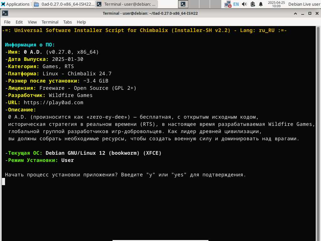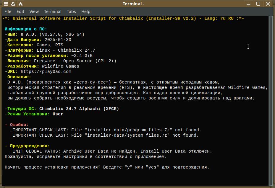 Да, выберу игру 0 A.D., именно её упакую в формат Installer-SH, причём брать буду игру не из вечно недоразвитых и тухлых репозиториев Linux, а с официального сайта, там и версия свежее.