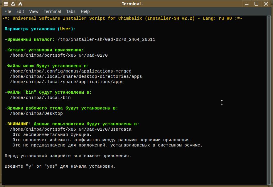 Хотя в моём приоритете поддержка именно дистрибутива Chimbalix, но пользователь на своё усмотрение может и под другими линуксами устанавливать приложения в формате Installer-SH.