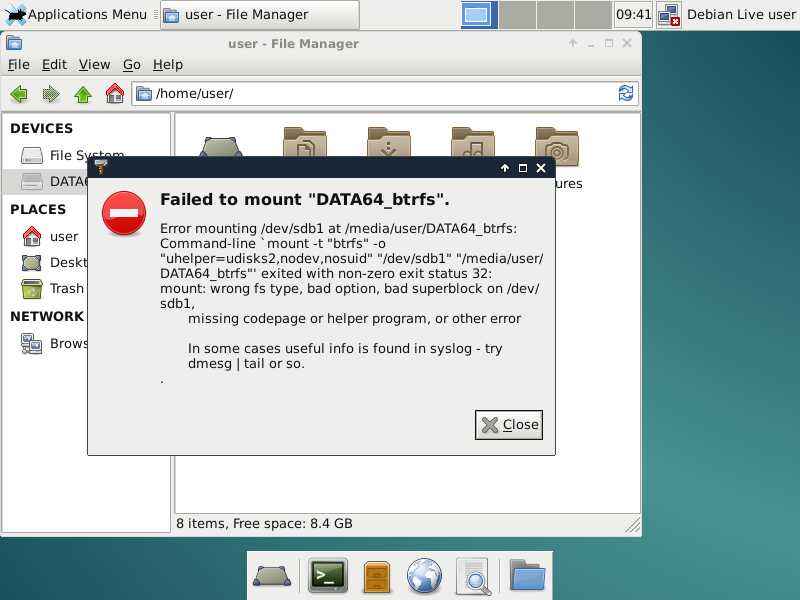 Хотел начать с Debian 8, но позабыл про характерную для Linux проблему, да, этот "дряхлый пингвин" не понимает линуксоидную файловую систему BTRFS...