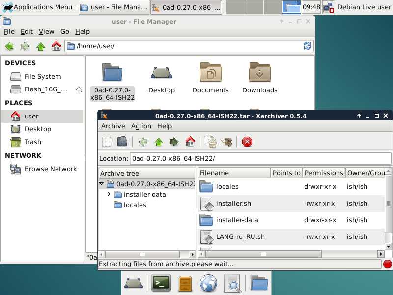 Через терминал тоже всё работает, правда забыл сделать ярлык для редактора с выносом домашнего каталога, хотя я не знаю, будет ли кто-то вообще пользоваться этой возможностью...