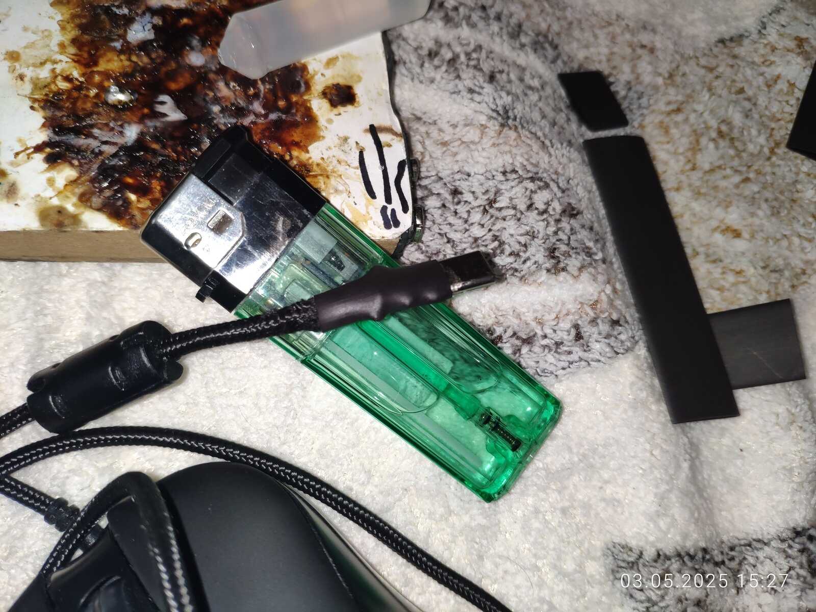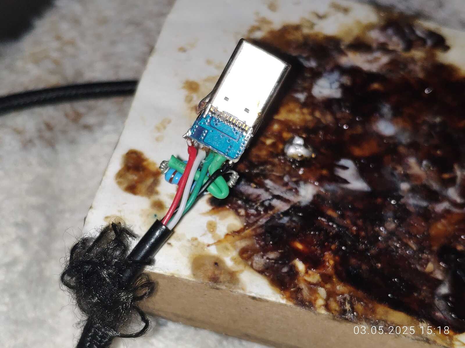 Хоть и была куплена новая мышь, но старая не давала покоя... В итоге отрезал обычный USB штекер и припаял Type-C, но проблема новомодного Type-C в том, что нельзя просто взять, и припаять провода, ничего работать не будет, в отличие от более старого USB 2.0.