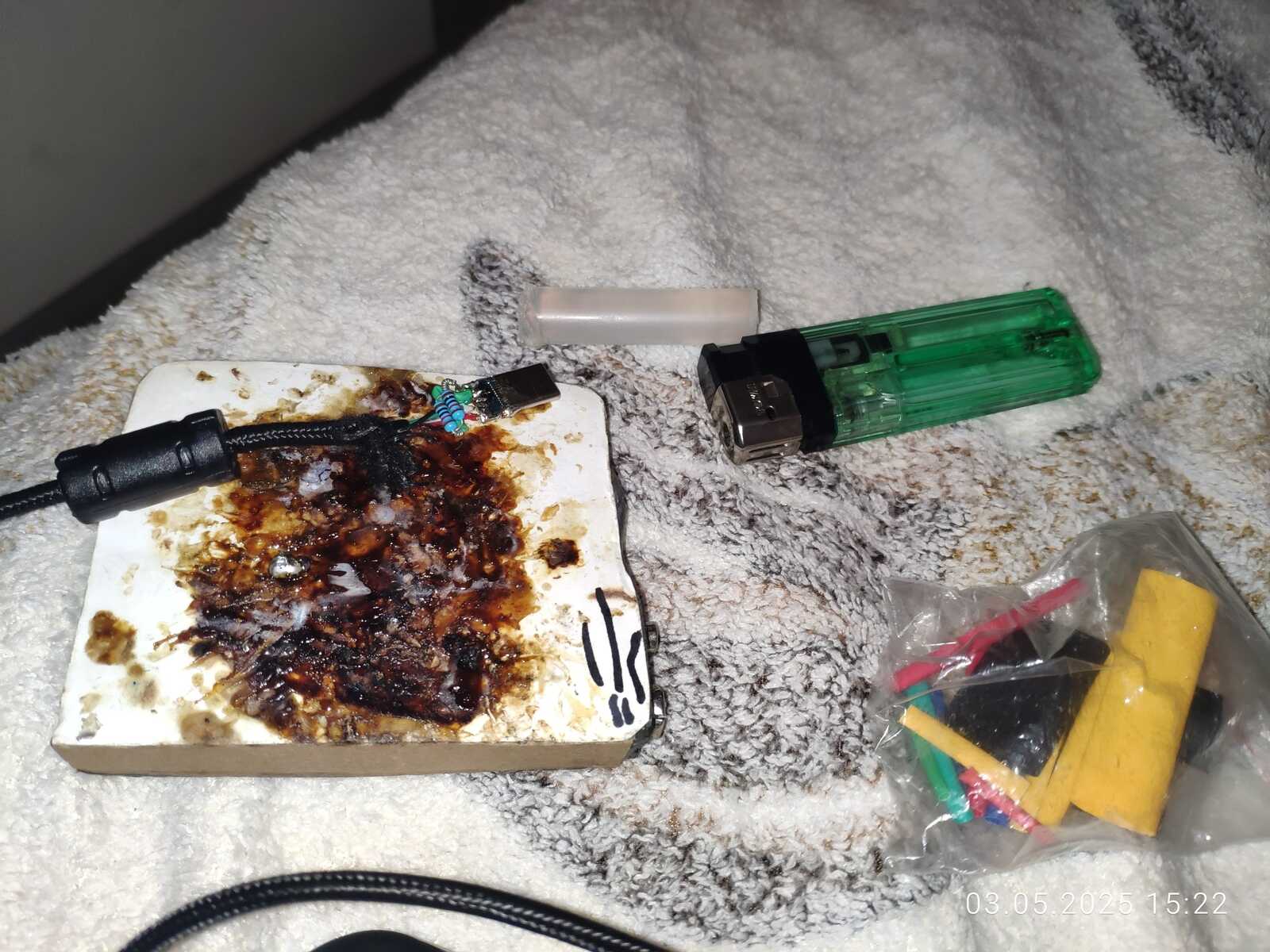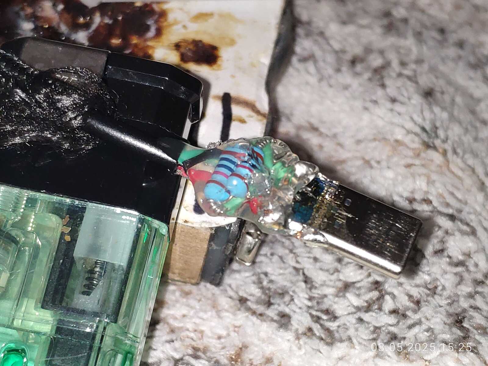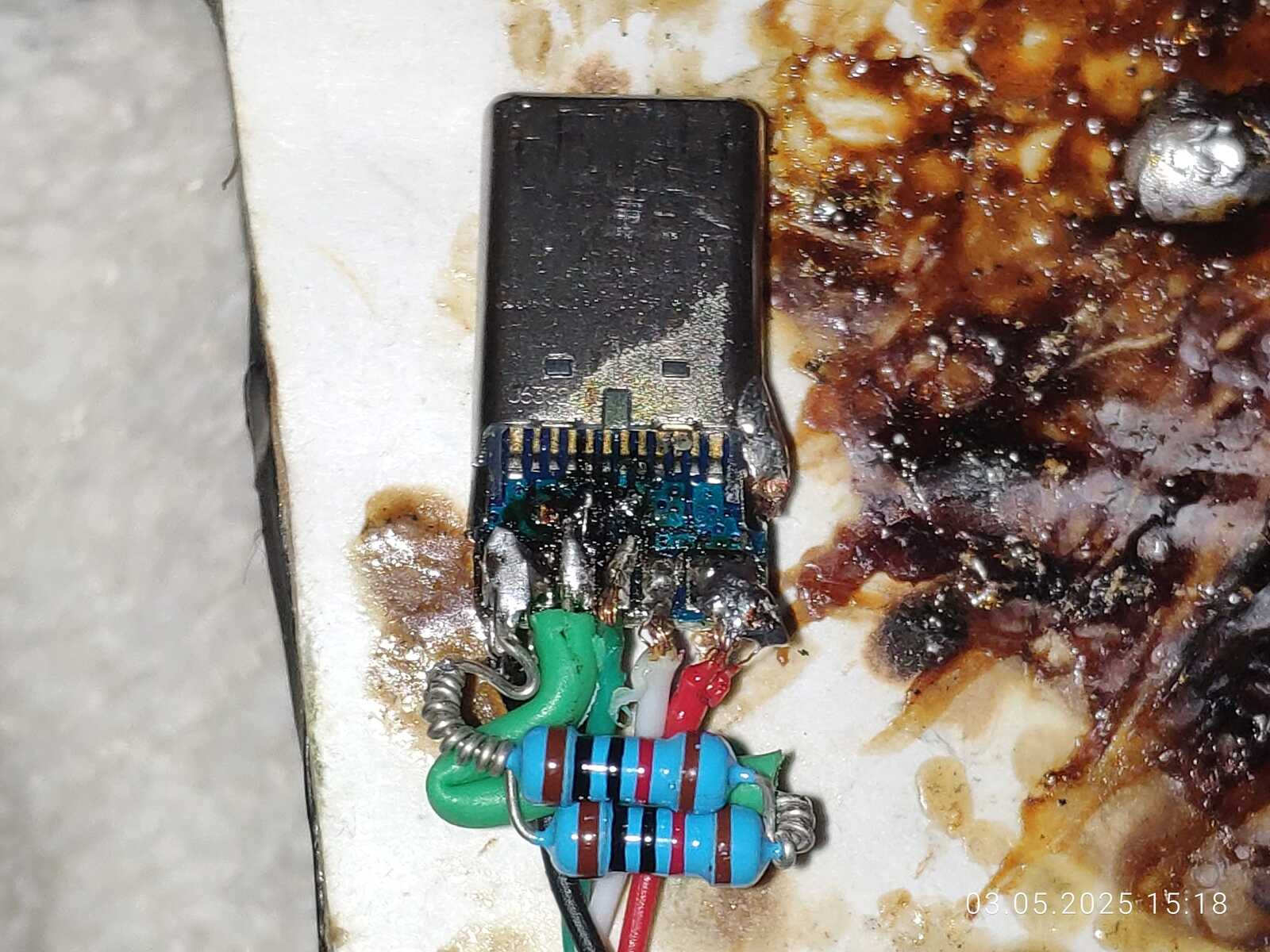Хотя ладно, всё не настолько просто, как может показаться, ведь USB Type-C настолько крохотный, что не выйдет такое паять любым паяльником, в моём случае пайка проводилась самодельным аккумуляторным паяльником с очень тонким жалом, с любым другим жалом будут большие проблемы.