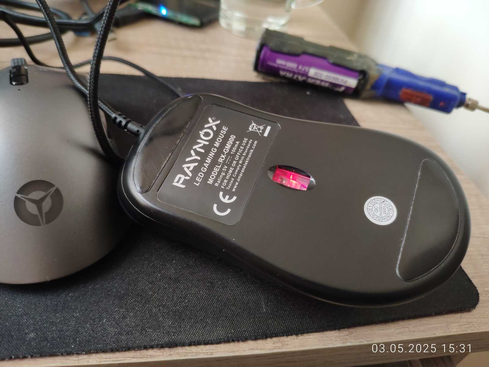 Раз уж добрался до мышки, давайте сделаем очень краткий обзор! Модель Raynox RX-GM900, есть кнопка смены DPI, несколько режимов подсветки переключаемых отдельной кнопкой, так же две кнопки для браузера, и стандартный набор с колесом. Нет никаких резиновых покрытий и подкладок, но это даже преимущество, ничего не отклеивается, и не протирается до пластика, просто удобная мышь без лишнего.