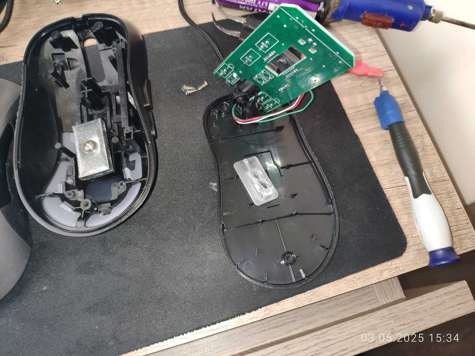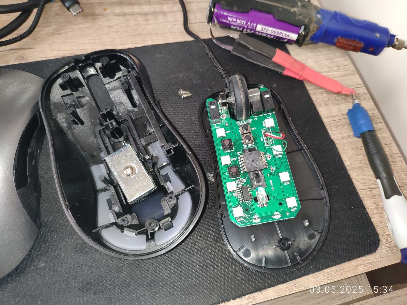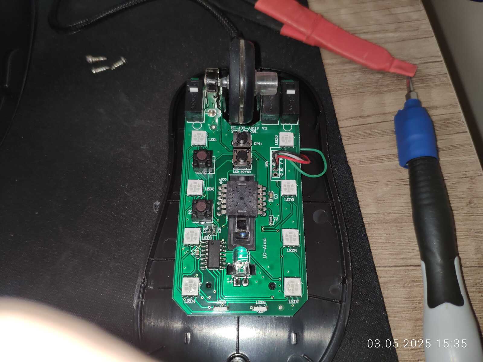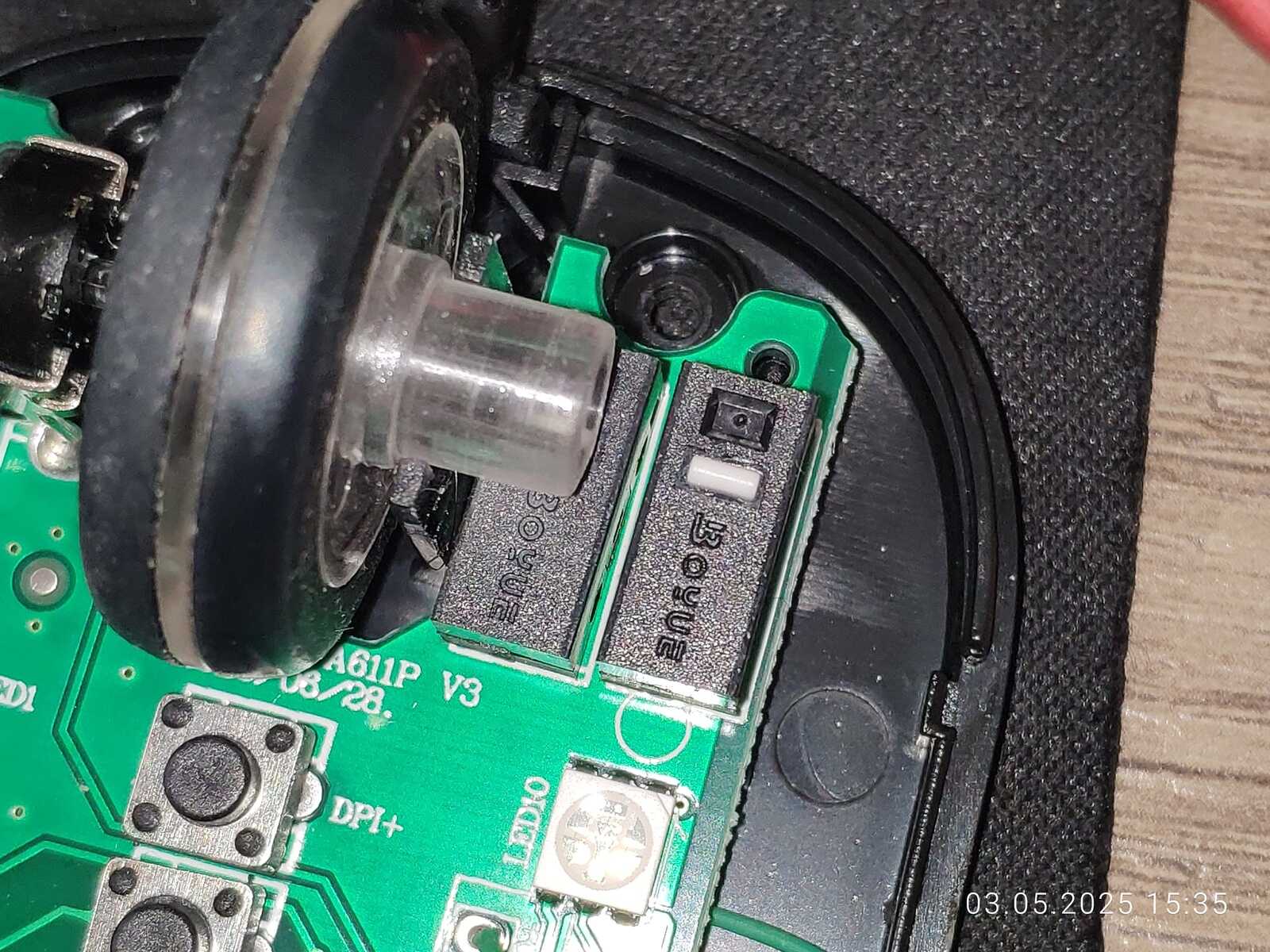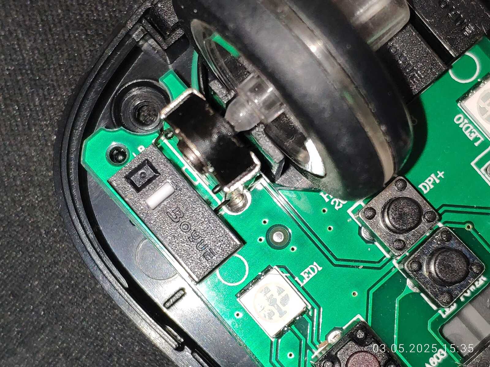 Так что я бы дал этой самоделке уровень сложности выше среднего, не меньше. Ну а что до левой кнопки мыши, тут ничего сложного, просто поменял местами левую и среднюю кнопку, без паяльника снова дело не обошлось, но тут уже любым хламом можно сделать дело.