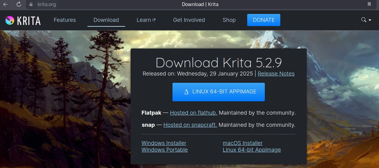 Найти установочный пакет Krita v5.2.9 в формате Installer-SH можно в репозитории GitHub.