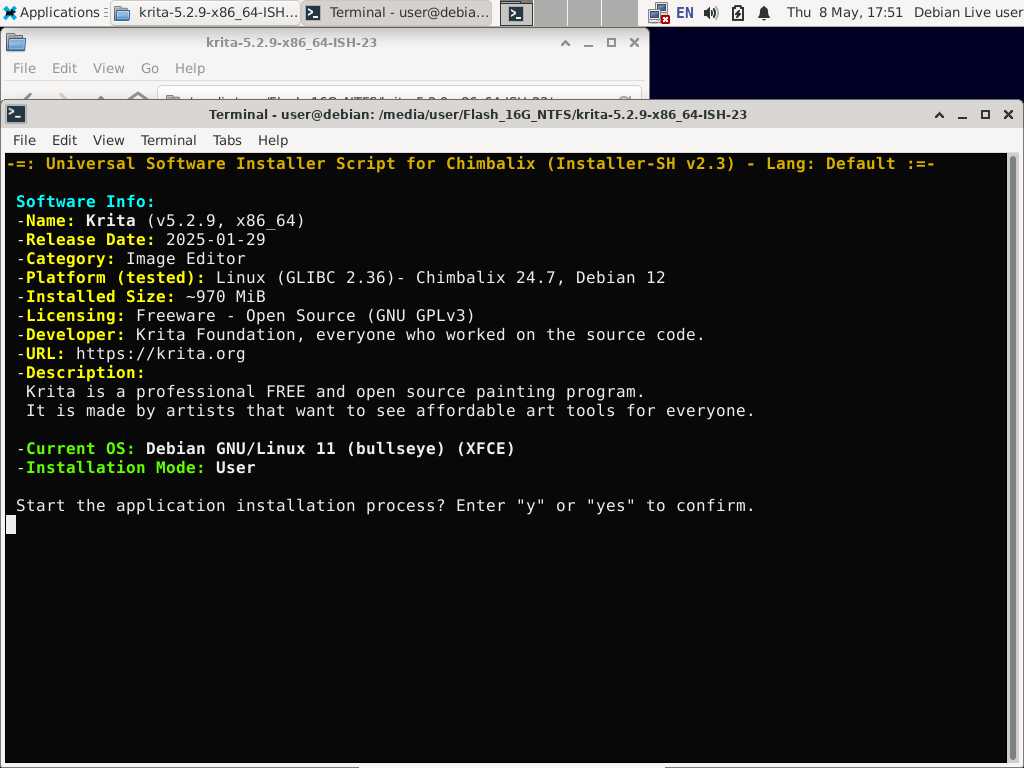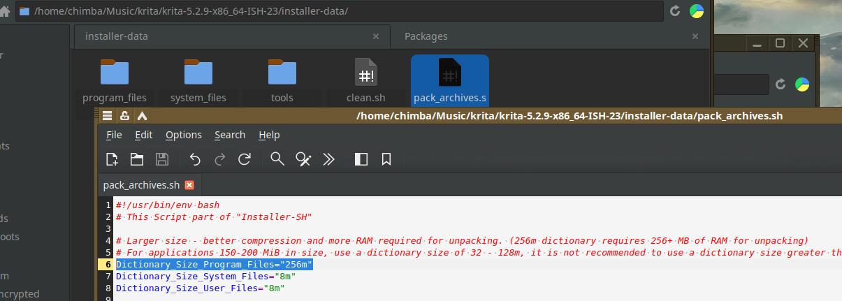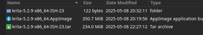 Ну что же, пакет готов, давайте сравним с исходным файлом, что был перепакован в формат Installer-SH. Что мы видим? Правильно, Krita 5.2.9 в исходном формате AppImage весит порядка 350 МиБ, когда в формате Installer-SH это же приложение весит всего 234 МиБ, разница в пользу Installer-SH на лицо.