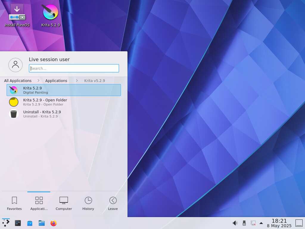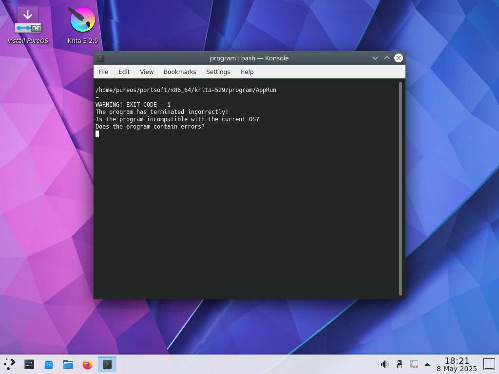 Ради забавы устанавливаю Krita в дистрибутиве PureOS 10, но увы, несмотря на 2022 год выпуска - этот линукс оказался не способен запустить Krita 5.2.9...