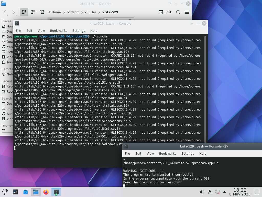 К чему это я? Правильно, совместимость с прочими линуксами можно выяснить посмотрев на требуемую версию GLIBC, в случае Krita требуется версия 2.36, а это уже линуксы уровня свежести Debian 12 и выше...