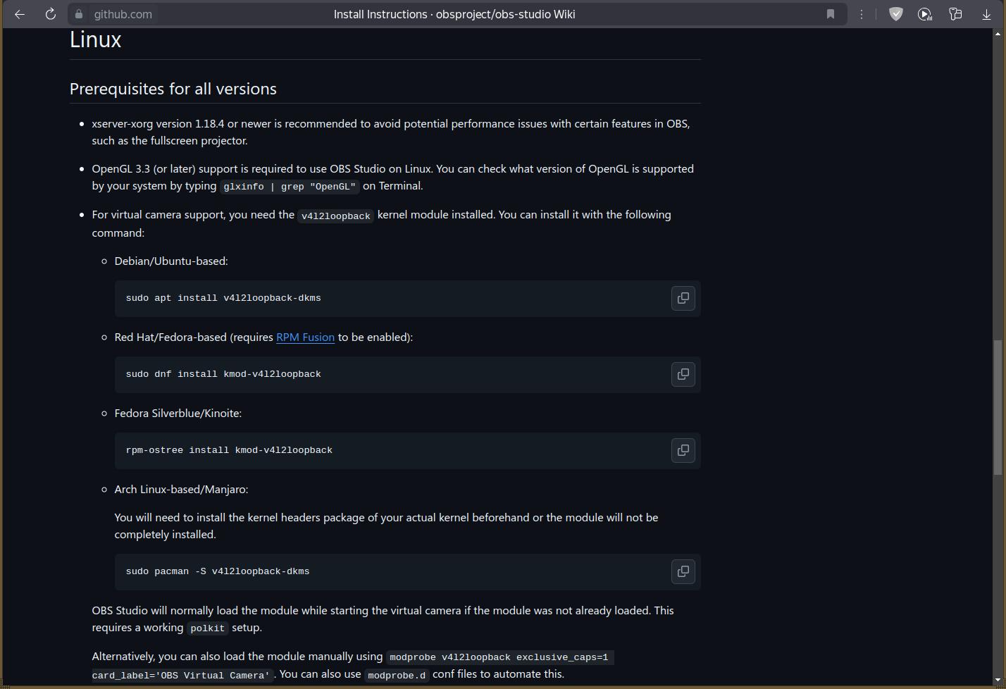 Ой, да что такое, а проблема, оказывается, популярная. Эх, разработчики OBS, какую же ересь вы советуете пользователям Linux. Наверное, поиздеваться решили...