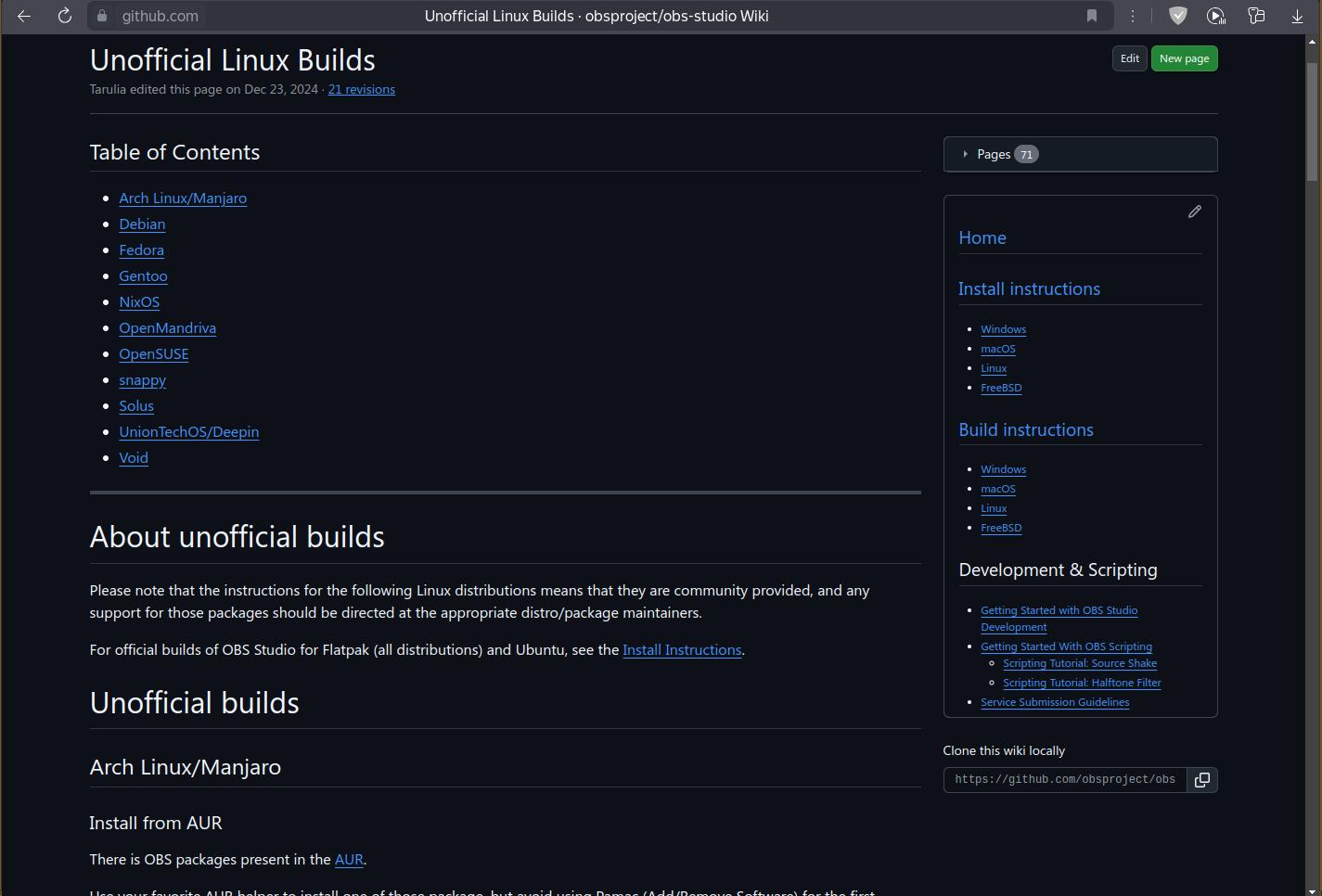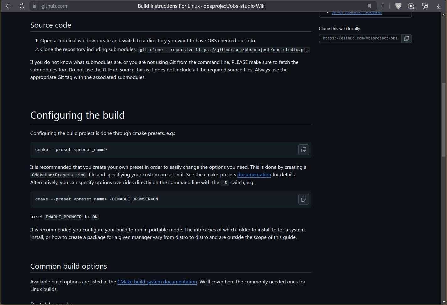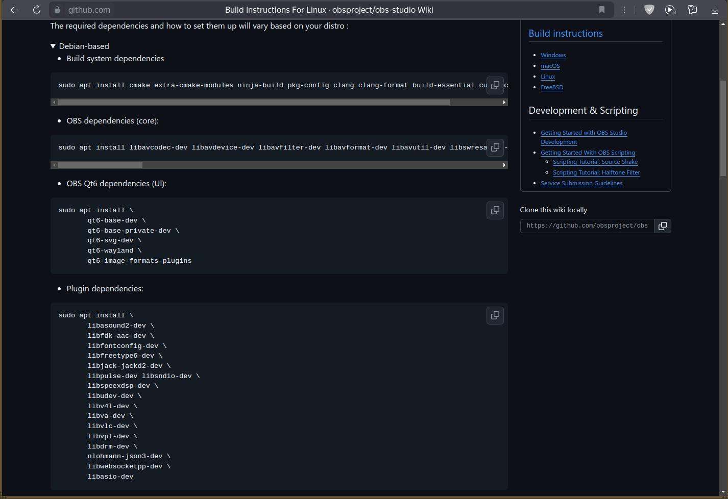 Остается последний вариант — собрать OBS из исходного кода! Как это линуксоиды порой втирают в уши, мол, исходный код взял да скомпилировал! Не то что в клятой и поганой Windows, где всё изначально по-человечески распространяют!