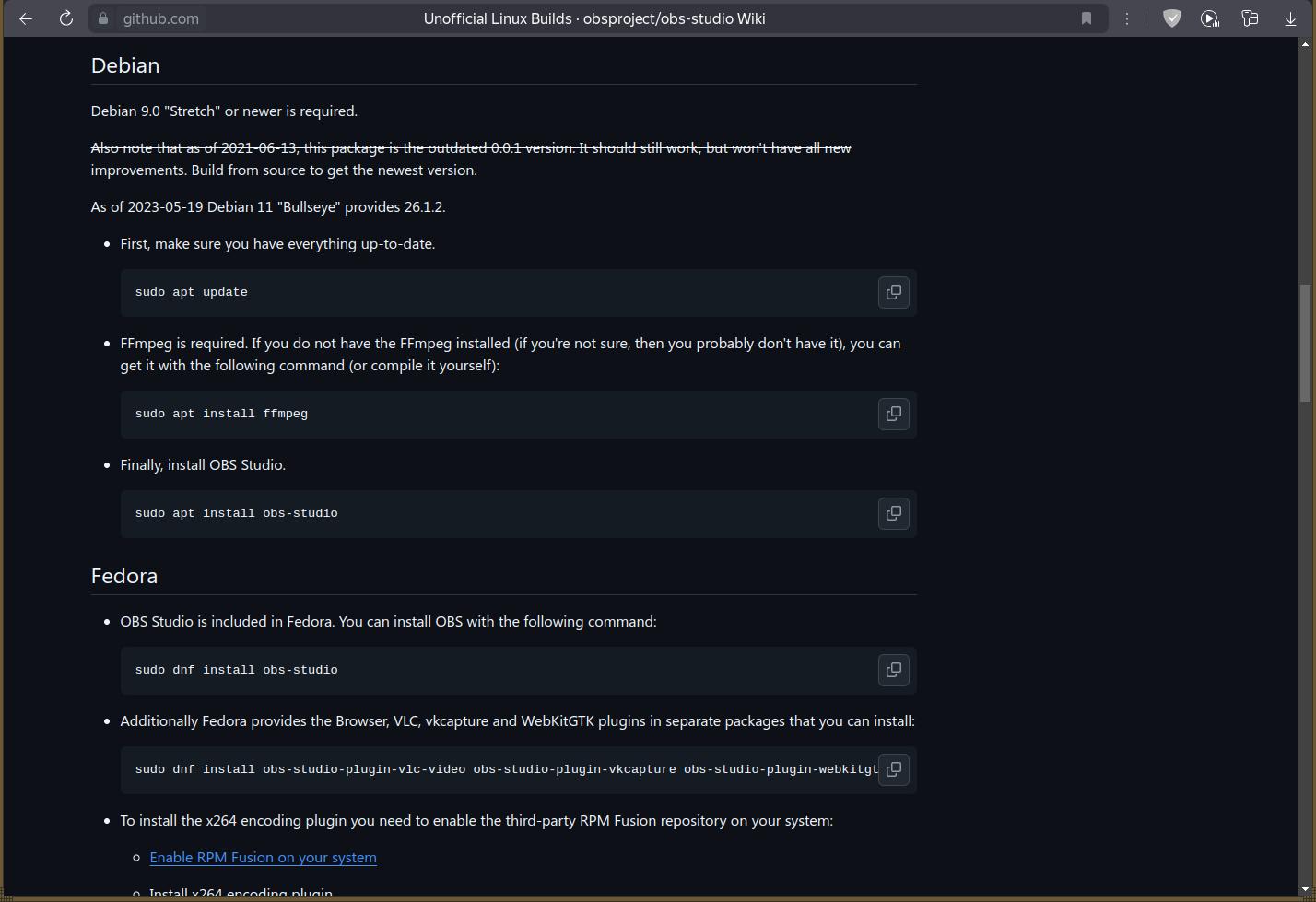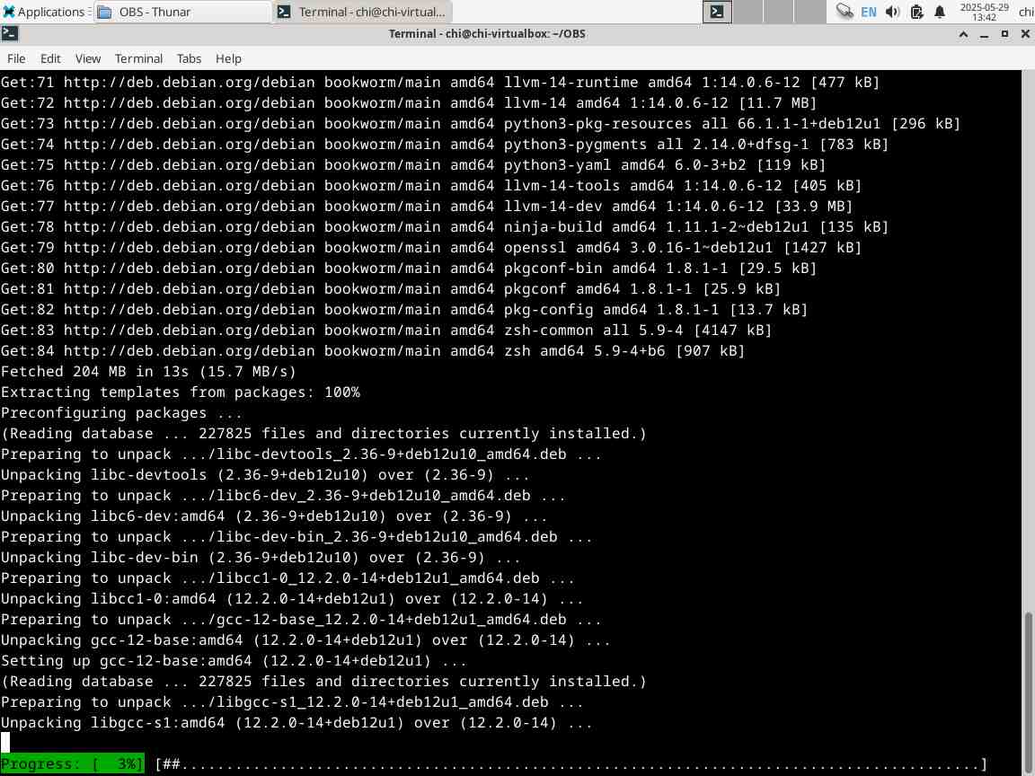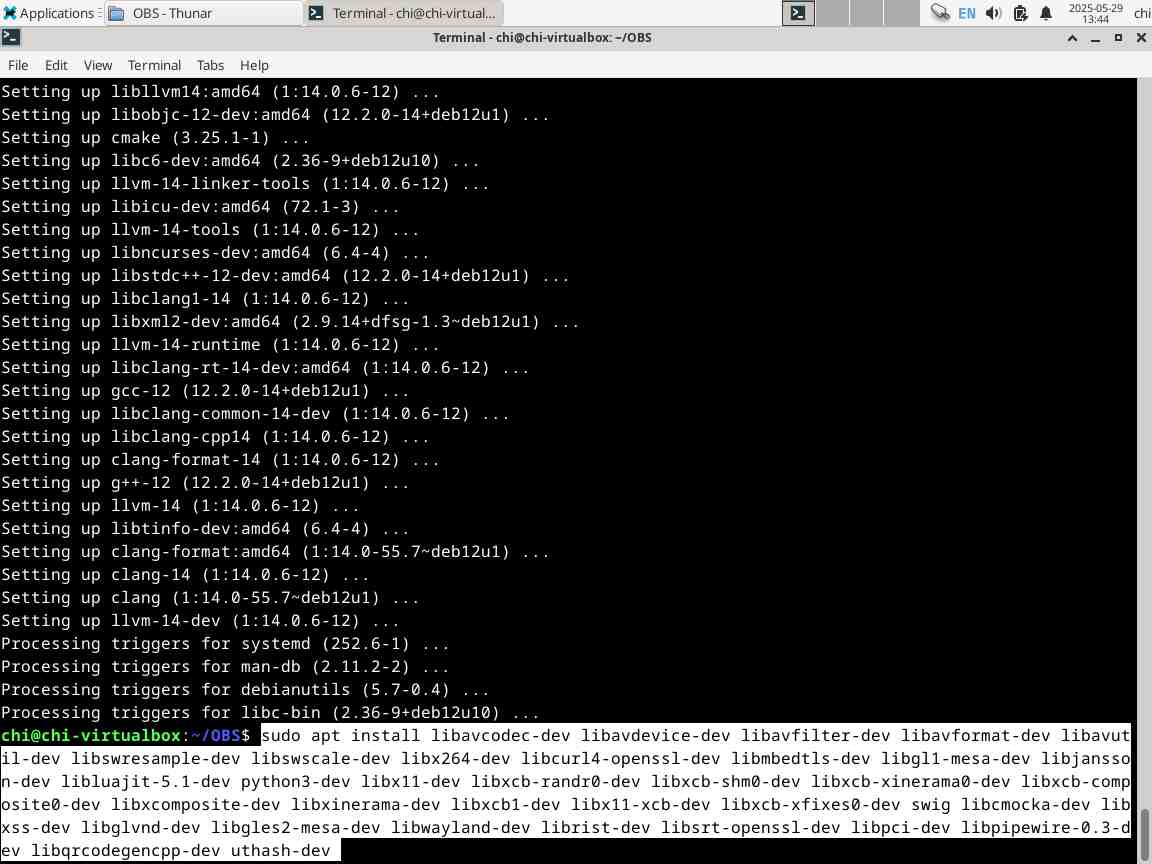 Так что оставим за кадром всё то мракобесие с установкой линукса, перейдём сразу к установленной системе, именно в Debian 12 я буду пытаться компилировать OBS Studio, уже второй раз, первый для себя делал, а второй уже для статьи, иначе если делать сходу для статьи, то это будет целый цикл статей с бесконечными танцами возле бубна над бесконечными линуксоидными проблемами...