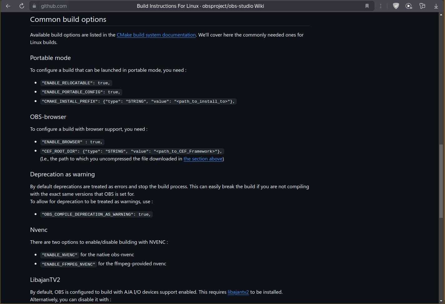 Может, в документации cmake подскажут, что нужно сделать для компиляции OSB Studio? Конечно нет, вот вам огромная простыня и танцуйте с этим, как хотите!