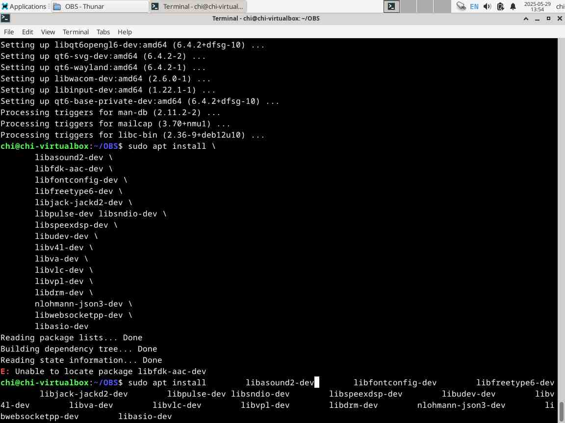 Наконец последняя пачка отвратительных зависимостей, упс, что такое, пакет «libfdk-aac-dev» не найден? Ох уж эти линуксоидные репозитории, а ведь делаю строго по инструкции от разработчиков OBS Studio, и уже такая подстава...