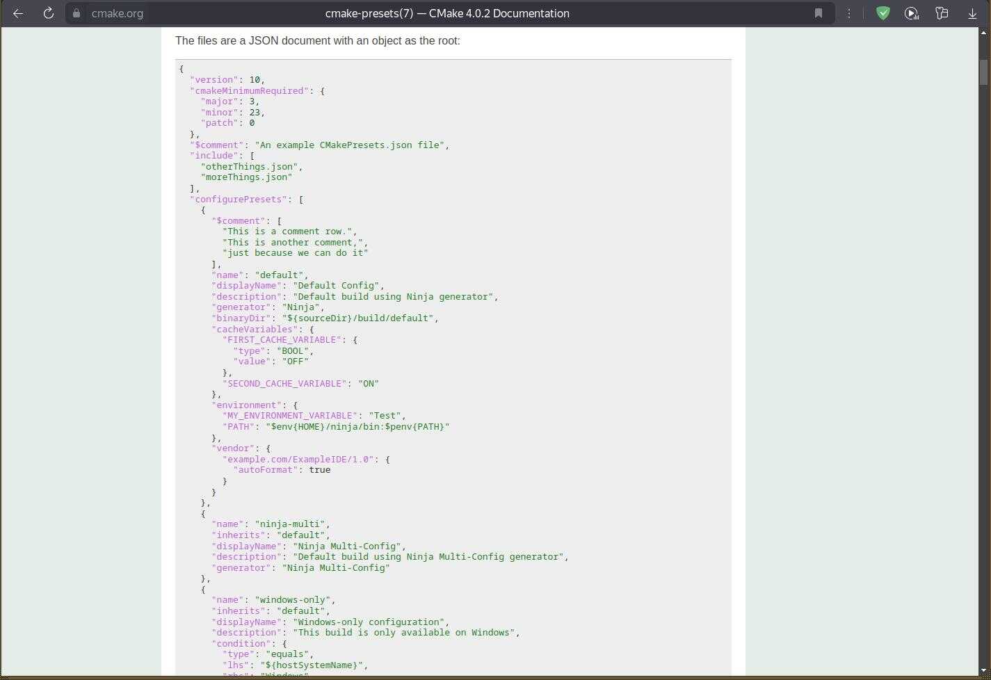 А вот дальше начинаются серьёзные проблемы, в инструкции указана команда для конфигурации проекта, но не указано, какой профиль использовать, даже элементарных примеров нет, только ссылка на документацию cmake, на данном этапе абсолютное большинство нормальных людей просто удалят линукс и забудут как про страшный сон, вернувшись в Windows...