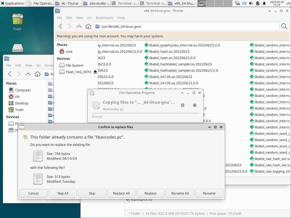 Может, библиотеки ffmpeg опять слишком старые? Давайте возьмем версию 7.1, чтобы наверняка! В системе уже целая помойка из библиотек, но OBS Studio упорно не желает видеть ничего, кроме версии 5.1, и что с этим делать, непонятно.