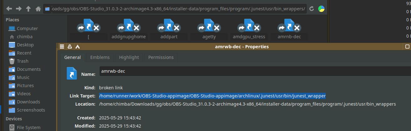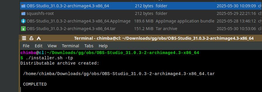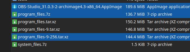 OBS Studio поистине отвратное приложение в техническом плане, столько мороки с ним, это просто не выразить без матерных слов... Впрочем, tar.xz хоть и хуже сжимает, даже настроенный на максимальное сжатие, но это всё равно лучше исходного AppImage, что-то среднее вышло, зато не будет принудительных воплей про «безопасность» и потери ссылок потенциально нужных.