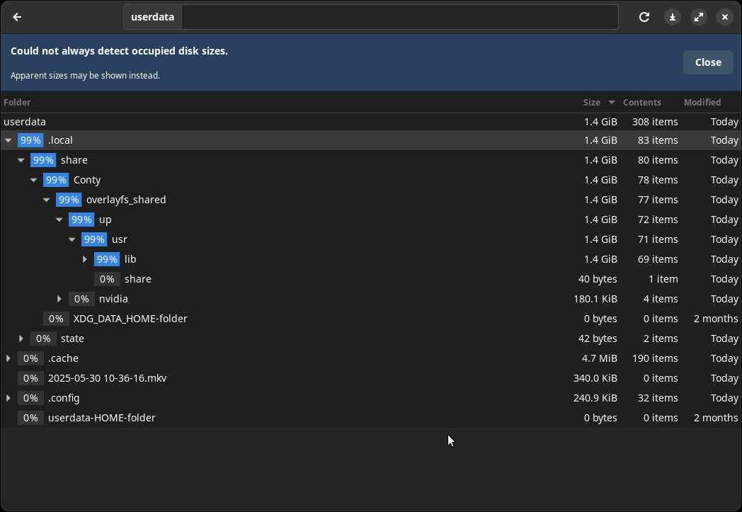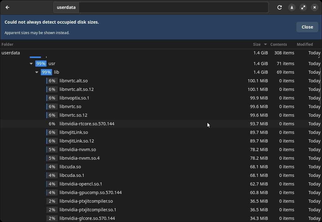 Но знаете, что было самым неожиданным? Правильно, хранение библиотек в домашнем каталоге пользователя, и ладно пара файлов, но там целая охапка размером 1,4 ГБ, похоже, оно скопировало системные библиотеки, надо будет добавить этот размер в информацию пакета...
