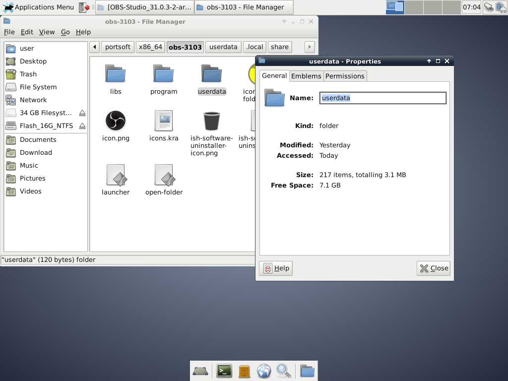 В целом OBS Studio работает, но почему я собрал пакет с выносом домашнего каталога?