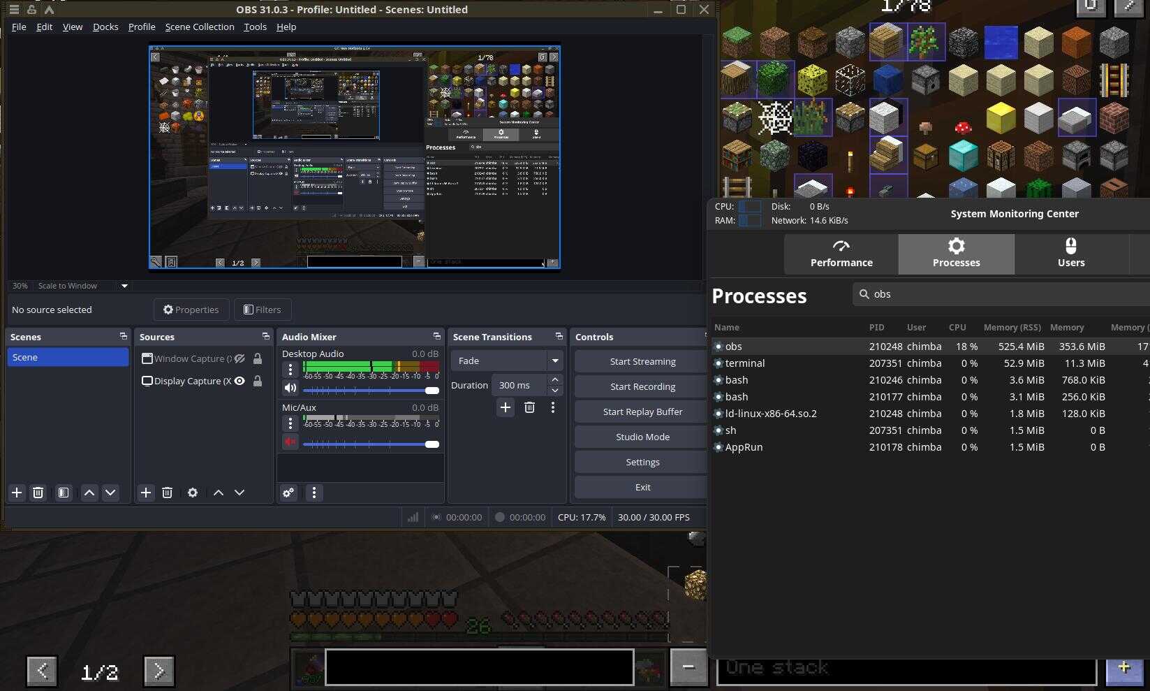 Да и ресурсоемкость отвратительная у AppImage варианта OBS Studio, ибо опять же, половину линукса утащили в контейнер, и работает оно вот так вот, как получается, моего i7-10875H, конечно, предостаточно в плане производительности, но с более слабыми процессорами уже могут возникнуть проблемы.