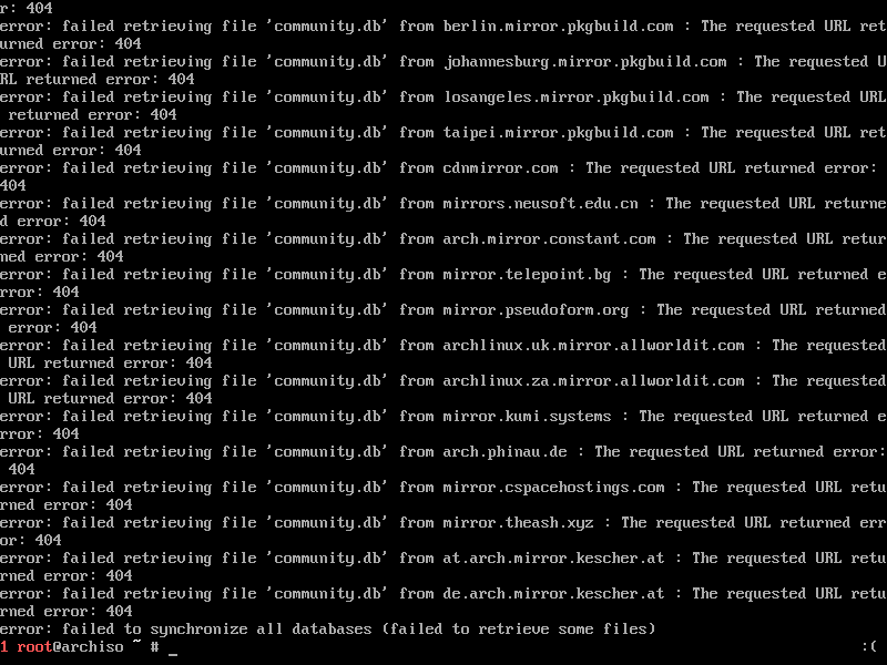 Беру Arch Linux 2023 года, какой уж есть в наличии. Ввожу обычную команду по советам линуксоидов, но оно не работает. Пробую ещё раз, ввожу более сложный вариант с параметром «-Syu», сначала что-то качает из интернета, а потом просто масса ошибок 404, репозитории мертвы, увы.