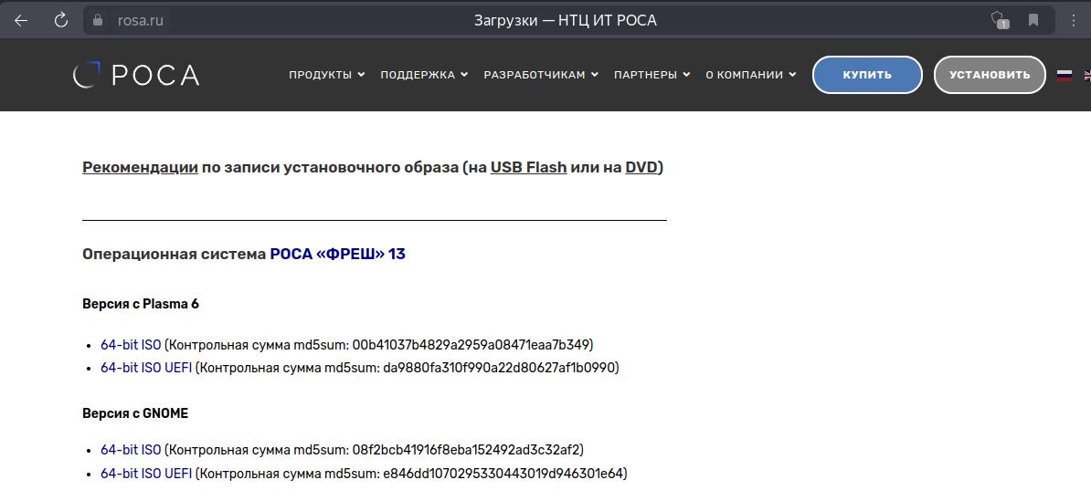 На этом я хотел закончить с Rosalinux, однако был найден способ получения установочного образа операционной системы без помощи торрентов, ссылки оказались под кнопкой «установить». Совершенно неоднозначная кнопка, противоестественная я бы сказал, ведь пользователь ожидает кнопку «скачать», а не «установить», да ещё и оформленную как «неактивная».