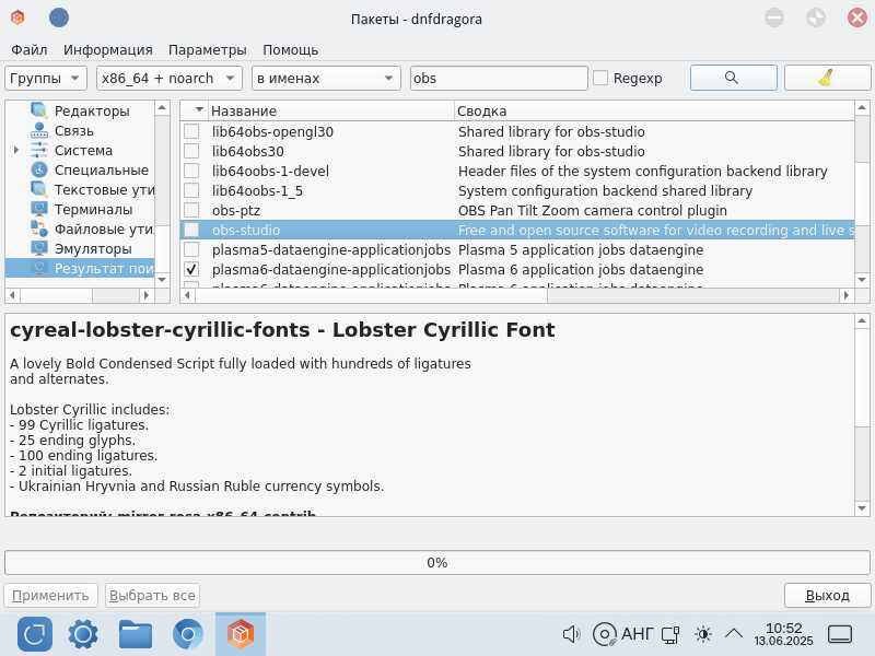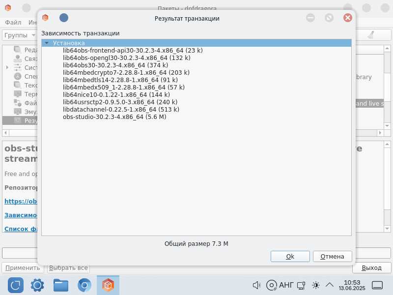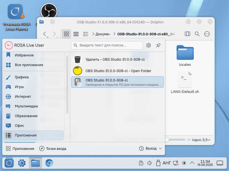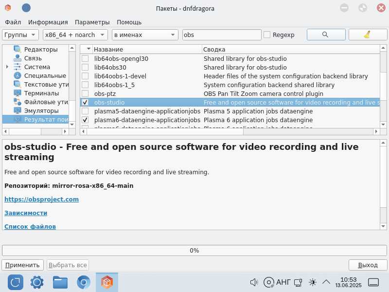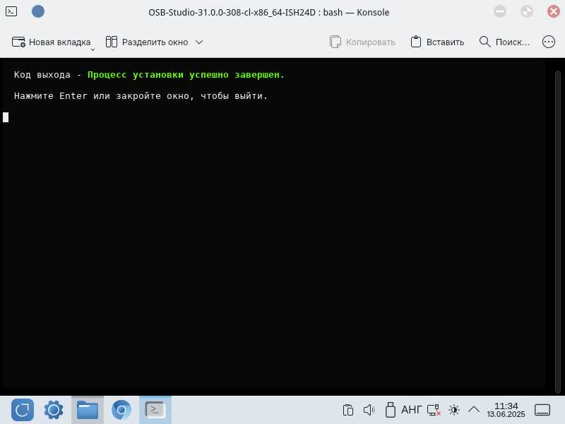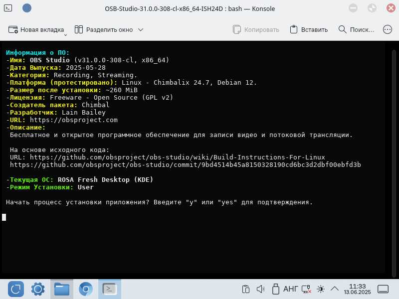 Кстати, совсем позабыл, ради интереса надо проверить свою версию OBS Studio 31 (2025-05-28) в формате Installer-SH. Буквально несколько нажатий и программа установлена, вот она, настоящая простота установки приложений, а не вот это всё ковыляние по нагромождённым меню приложений, и непрактичным пакетным менеджерам.