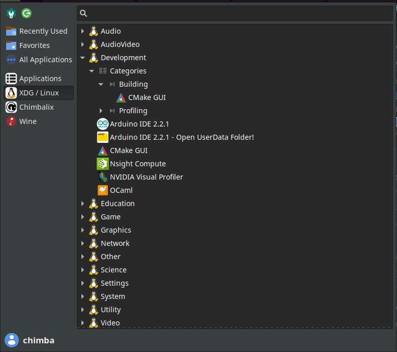 Потом идёт раздел «XDG / Linux», сформирован в основном по спецификациям Free Desktop Menu v1.1, примерно таким должно быть меню во всех Линуксах следующих спецификациям, чего на практике практически не случается, к великому сожалению...