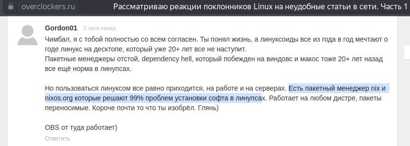 Осталось только проверить способ распространения софта Nix. Но знаете, как пользователь, я устал проверять эти бесконечные пакетные менеджеры, ибо получаю лишь разочарование и массу проблем. Так что не знаю, буду ли вообще проверять очередной линуксоидный менеджер пакетов. Выглядит как очередная пачка проблем ради сомнительного результата.