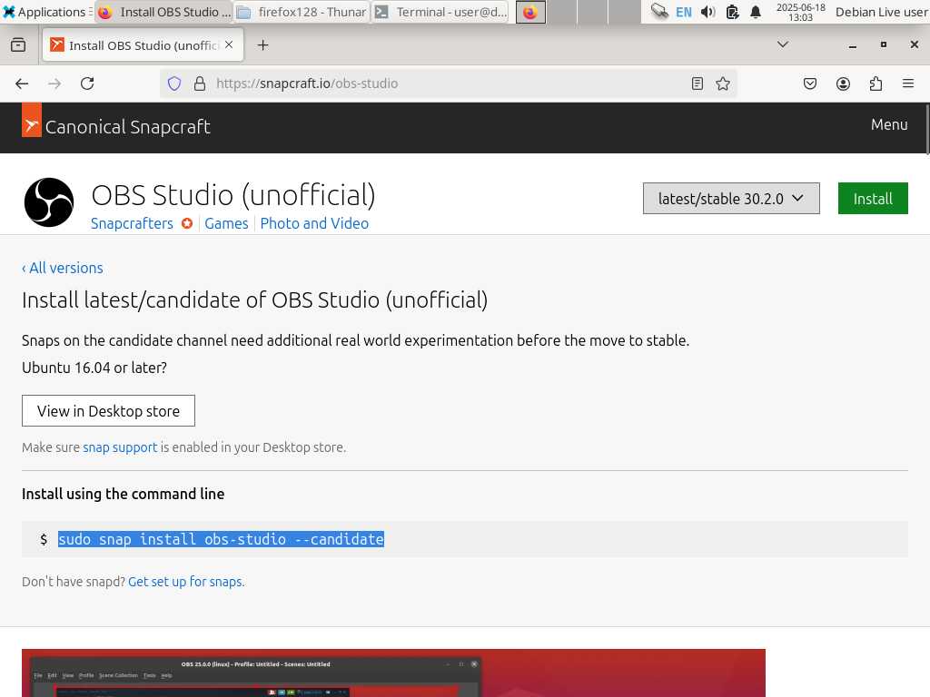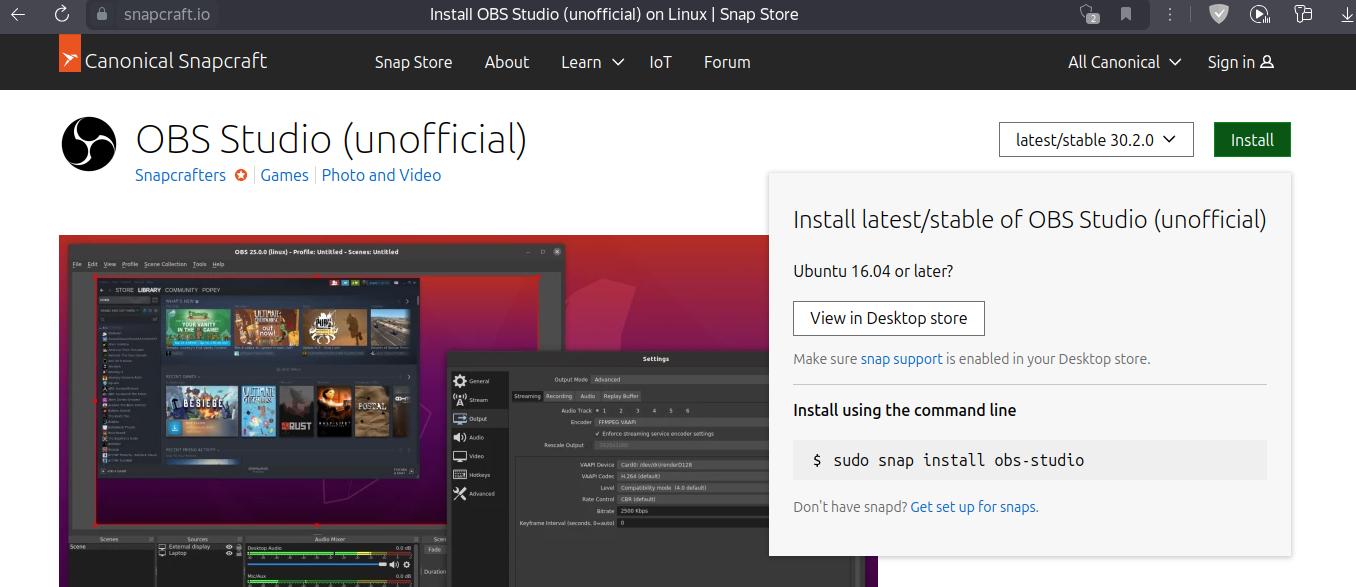 Я уже проверил: snapcraft.io не позволяет скачивать автономные установочные пакеты, как и flathub.org. Так что да, в этом плане ничего хорошего нет. А ещё предлагают последнюю версию OBS Studio 30, когда актуальная — 31.
