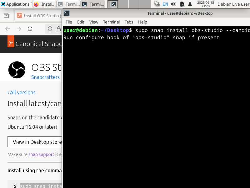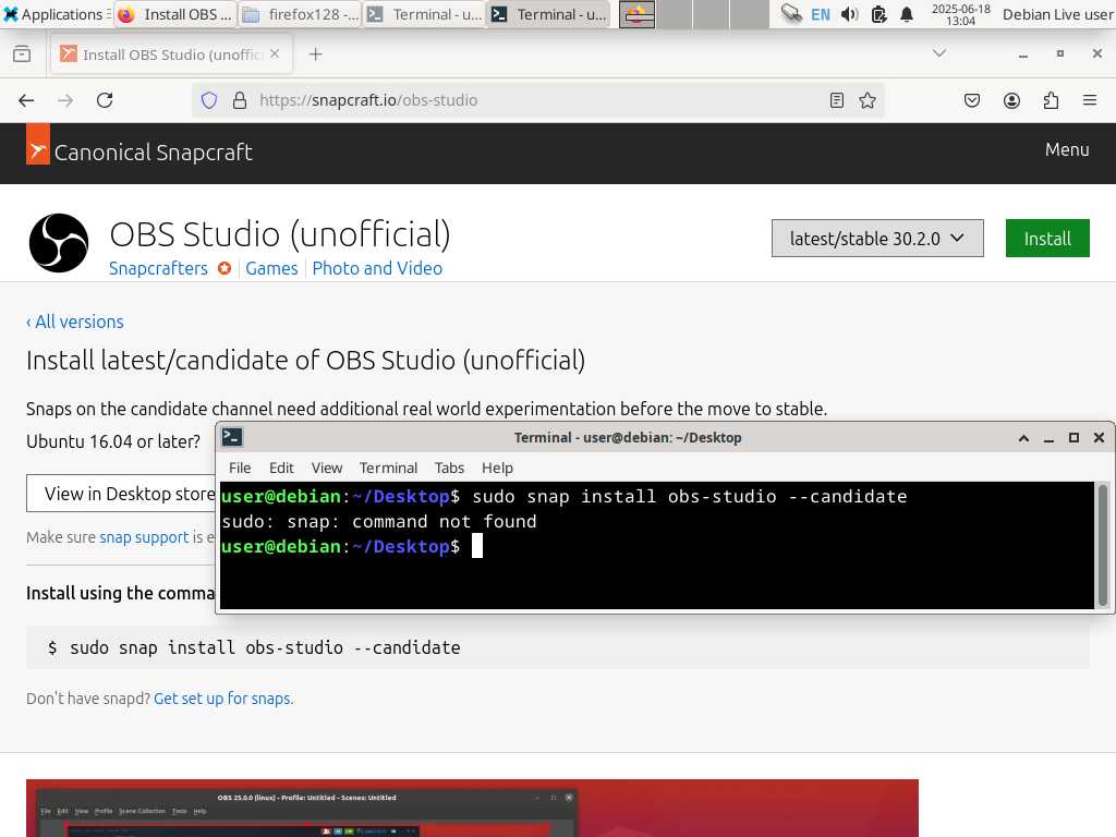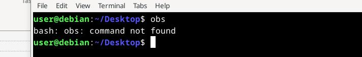 Команда «obs» в терминале тоже не работает. Я не могу запустить установленную программу.