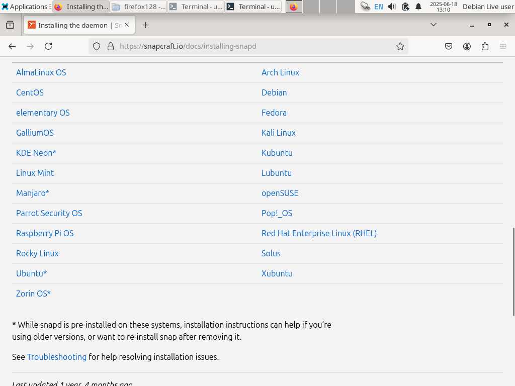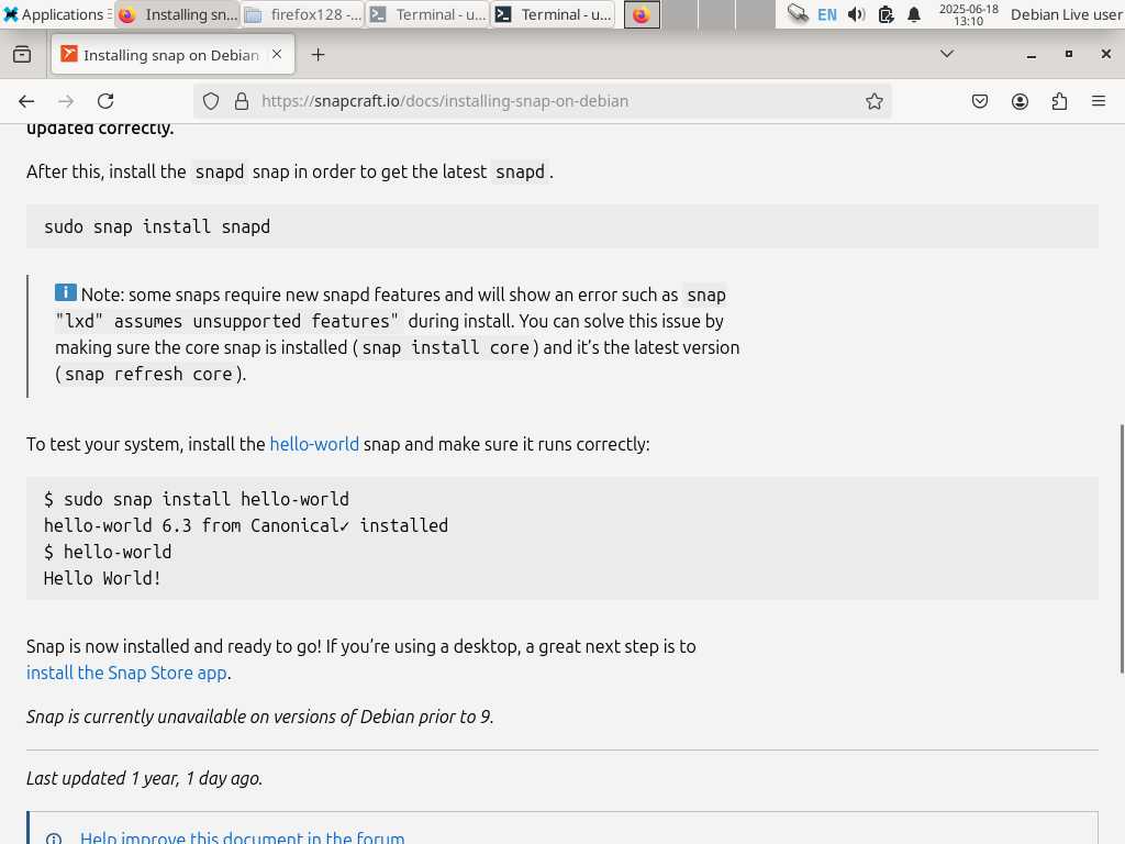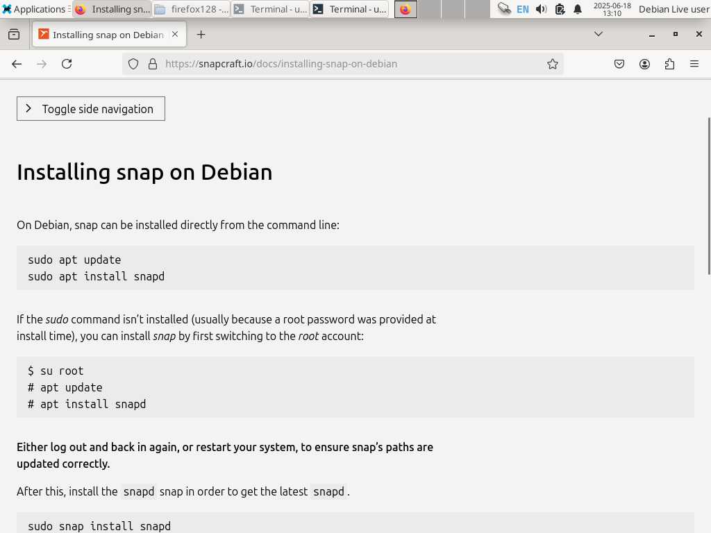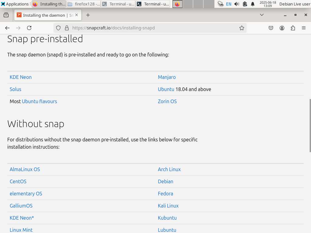 Я не могу пользоваться сайтом snapcraft.io, ведь он банально не работает в браузере Mozilla Firefox 102.11.0esr. А ведь именно с таким браузером поставляется чистый Debian 12 — актуальная на текущий момент версия дистрибутива.