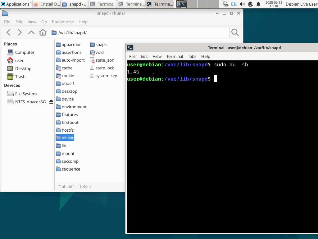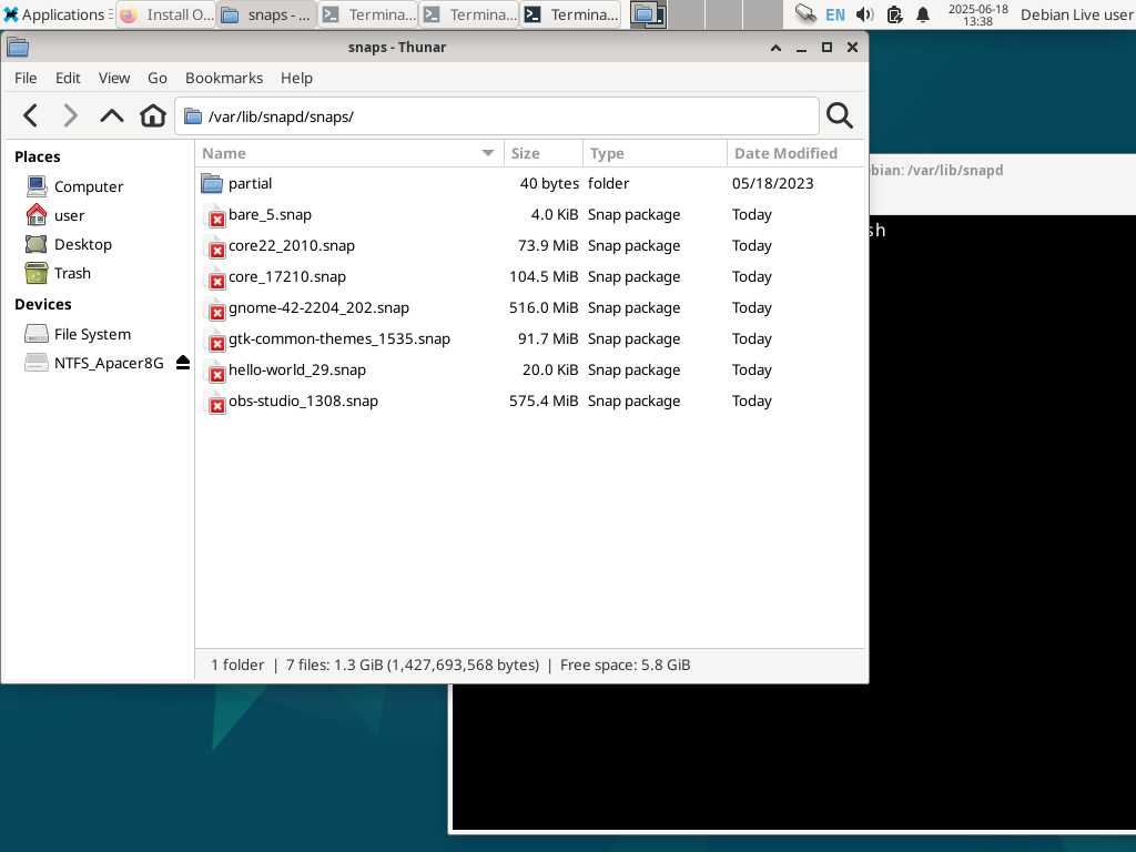 Основная масса занятого места приходится на каталог «/var/lib/snapd/snaps». Там вижу файлы с расширением «snap». Теоретически их вроде даже можно перенести обычной флешкой на другой компьютер. Но проблема в том, что сам Snap устанавливается линуксоидными менеджерами пакетов, а после докачивает уже сам своё ядро. И нет никакой возможности просто подкинуть файлы на другом компьютере без полноценной установки.
