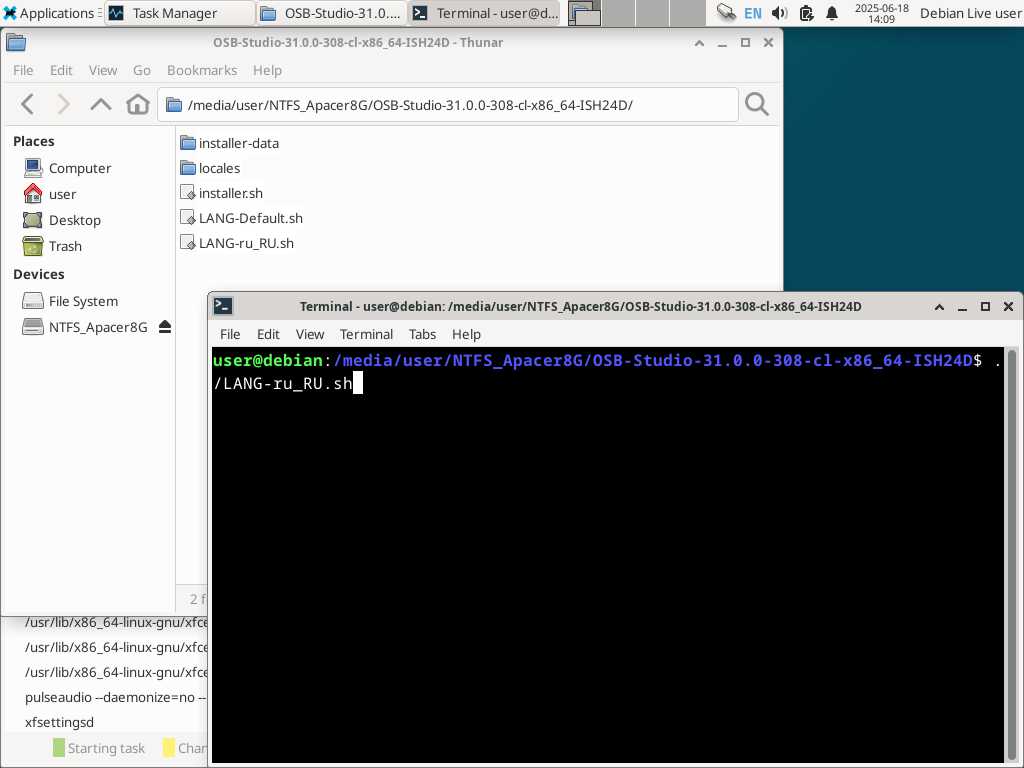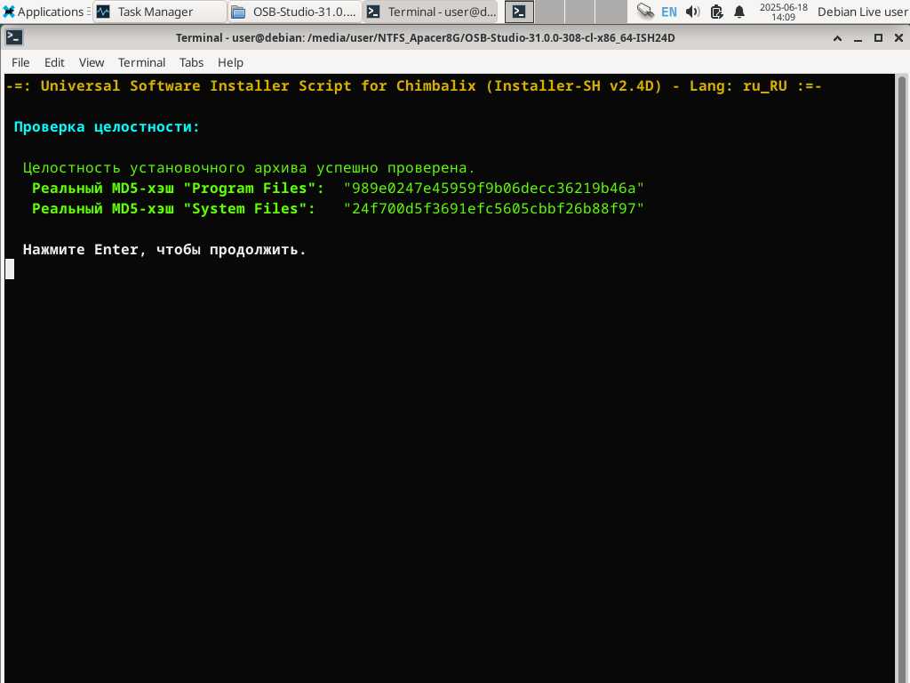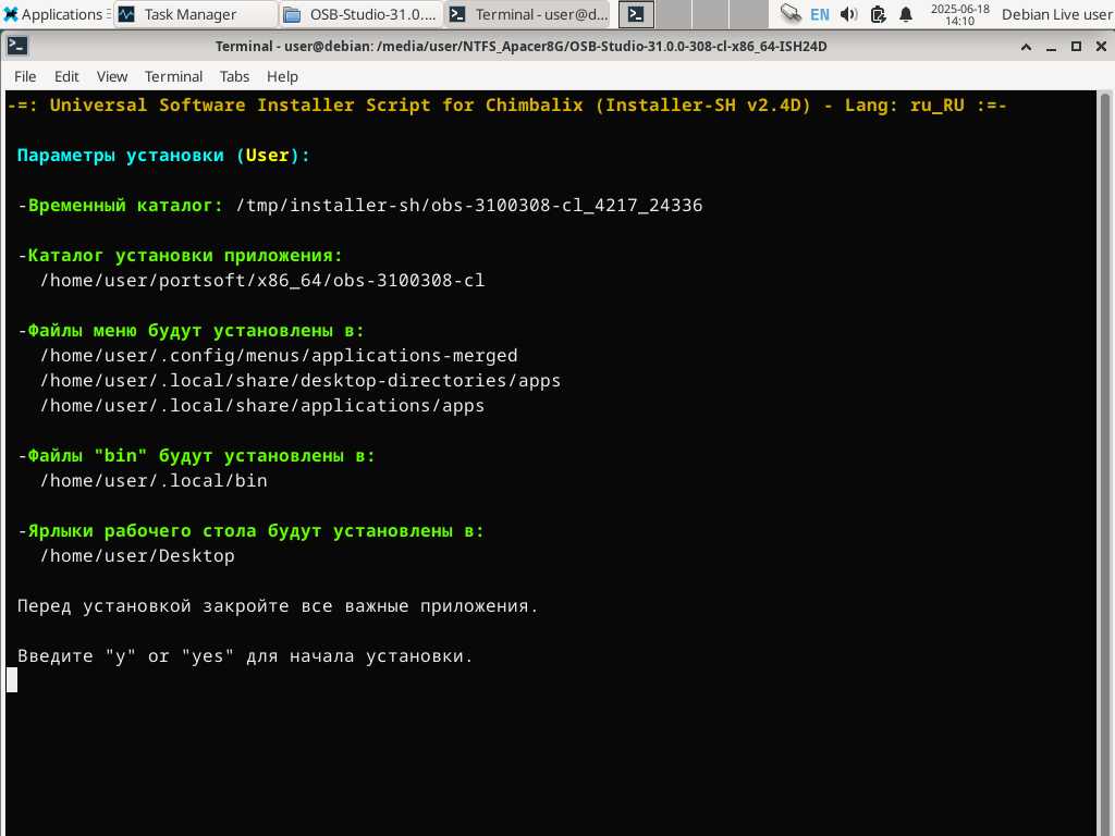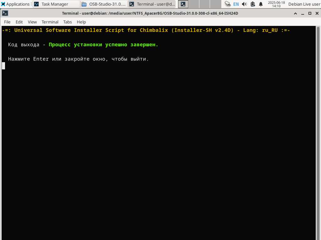 Попытка запустить OBS Studio руками провалилась. Пишет, что дистрибутив Linux не поддерживается.